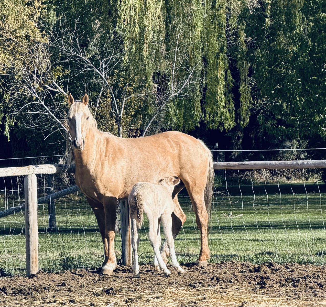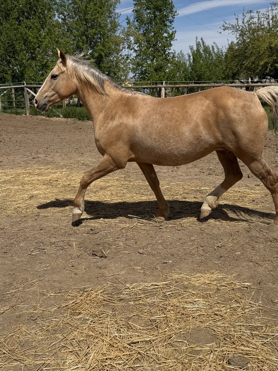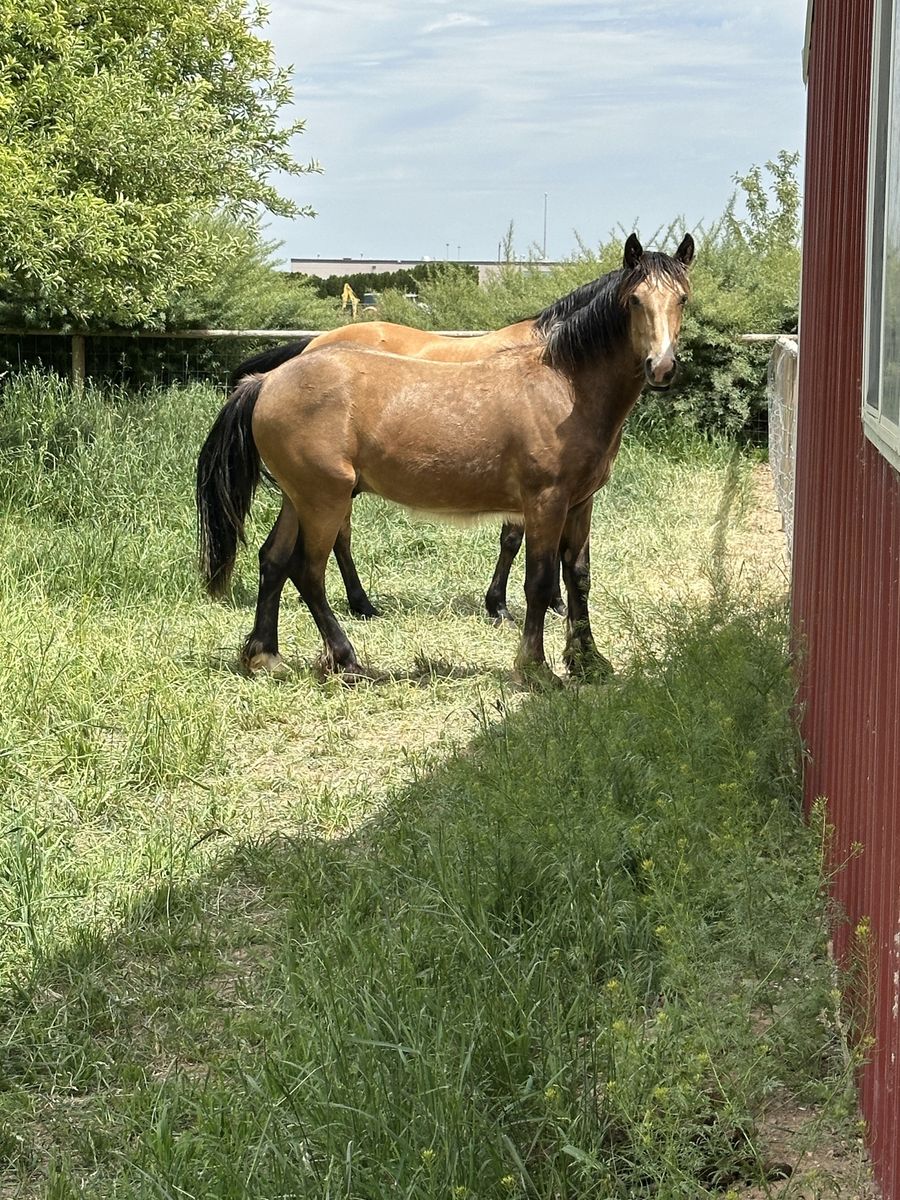 Palomino Mare and Perlino colt. Palomino is a titled mustang about 14’3 tall needs lots of work does get trimmed every 10 weeks, baby colt is mustang, gypsy - quarter cross. Sire is a Buckskin (last picture) out of a Grullo quarter horse and Gypsy buckskin stud. Colt has two beautiful blue eyes and is a sweetie and will give you some beautiful colors. He was born 4/25/26. Located in Kimberly Idaho