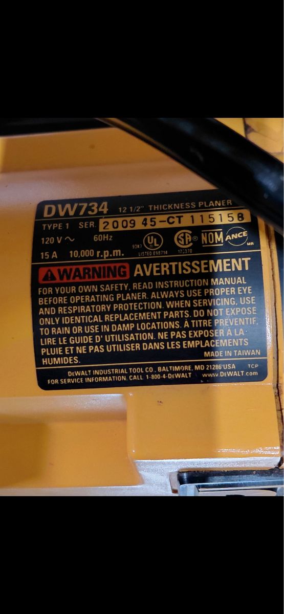 VenmoDeWalt DW734 12 1/2 inch heavy duty planer. $400.