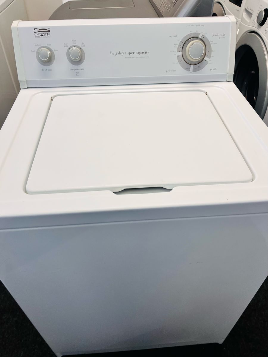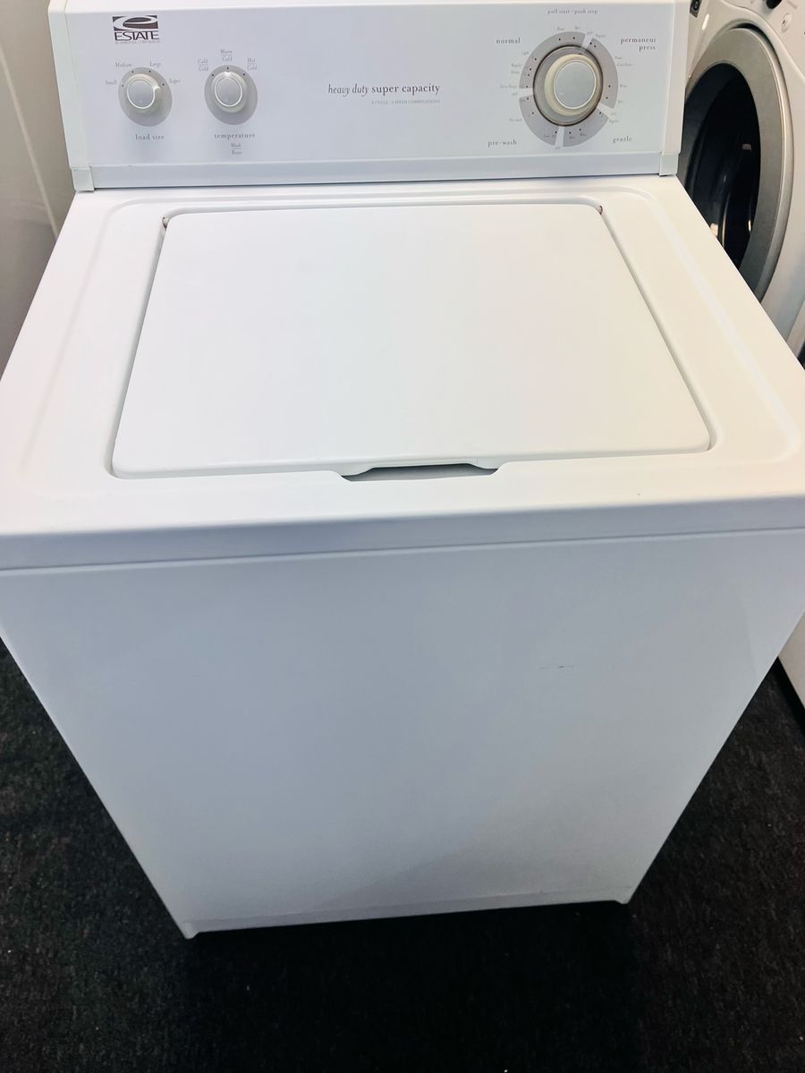 Very reliable and heavy duty estate by Whirlpool washing machine with and agitator, it’s an older style and preventative maintenance has just been done so it’s as good as new. Nothing fancy or digital. Just does what it’s supposed to. Wash non stop. Only $200 I can deliver and install for a little extra. Call 8015403075