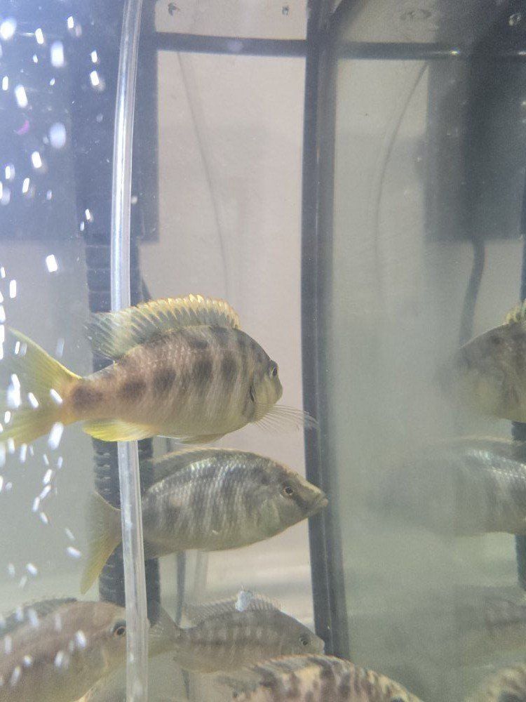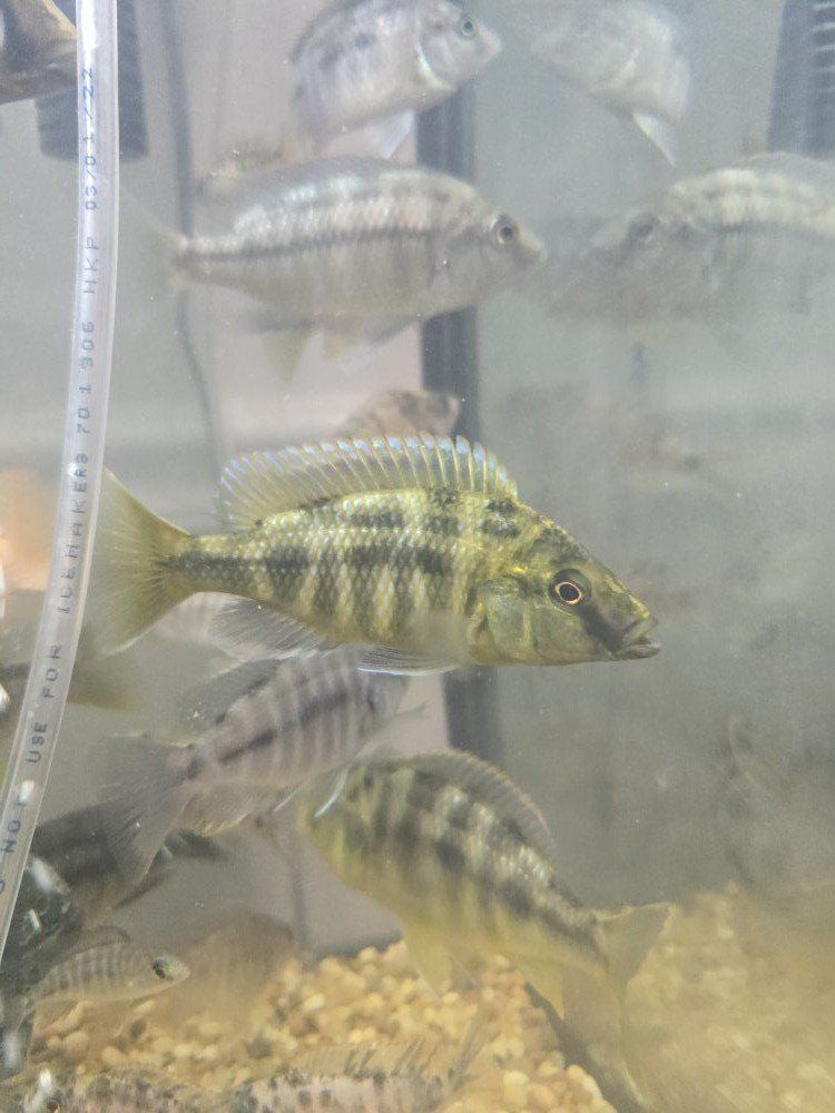 These are very healthy female Venustus and Peacock cichlids; they are adults and have already bred.
