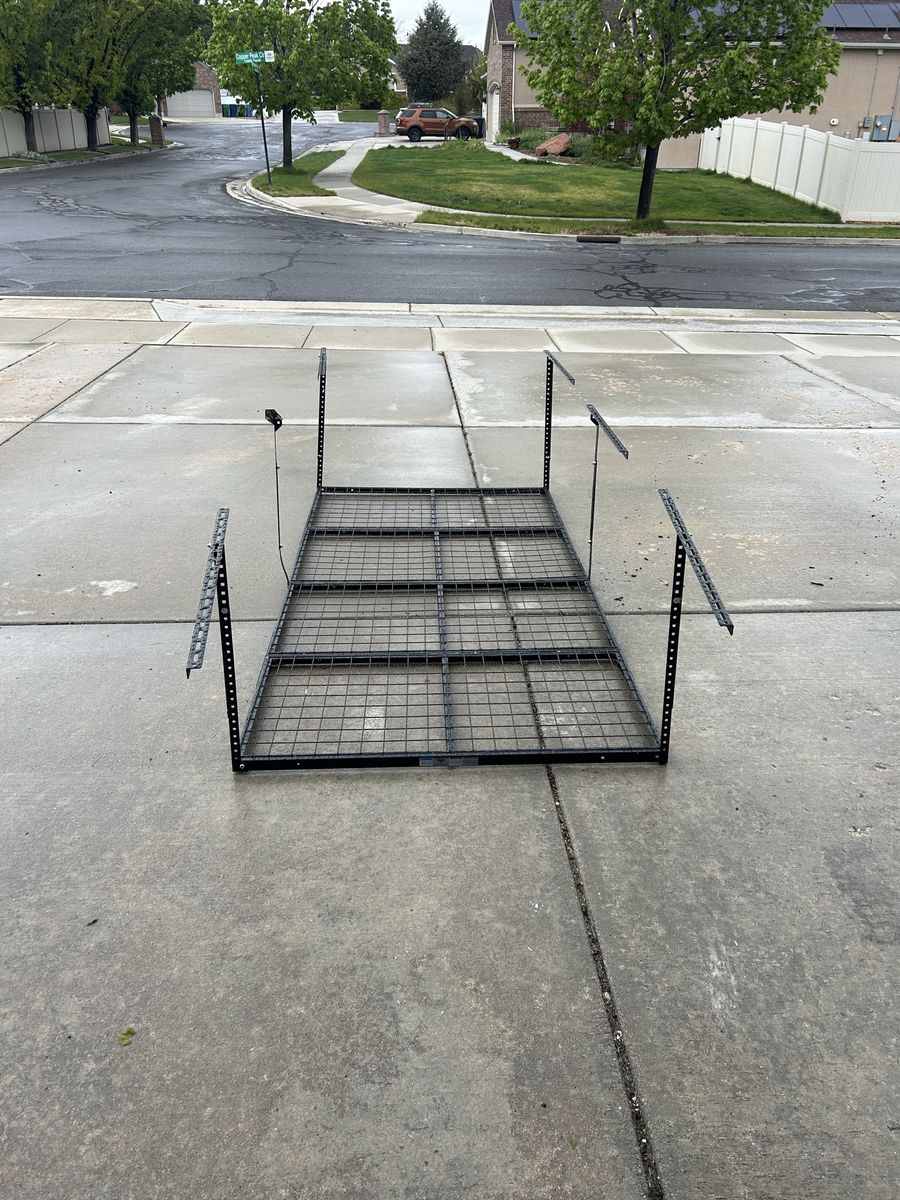 Up for sale is a used, good condition rack for a garage. Price new is $200. Dimensions are four feet by eight feet. Text Joe with any questions. (801) 949-6934