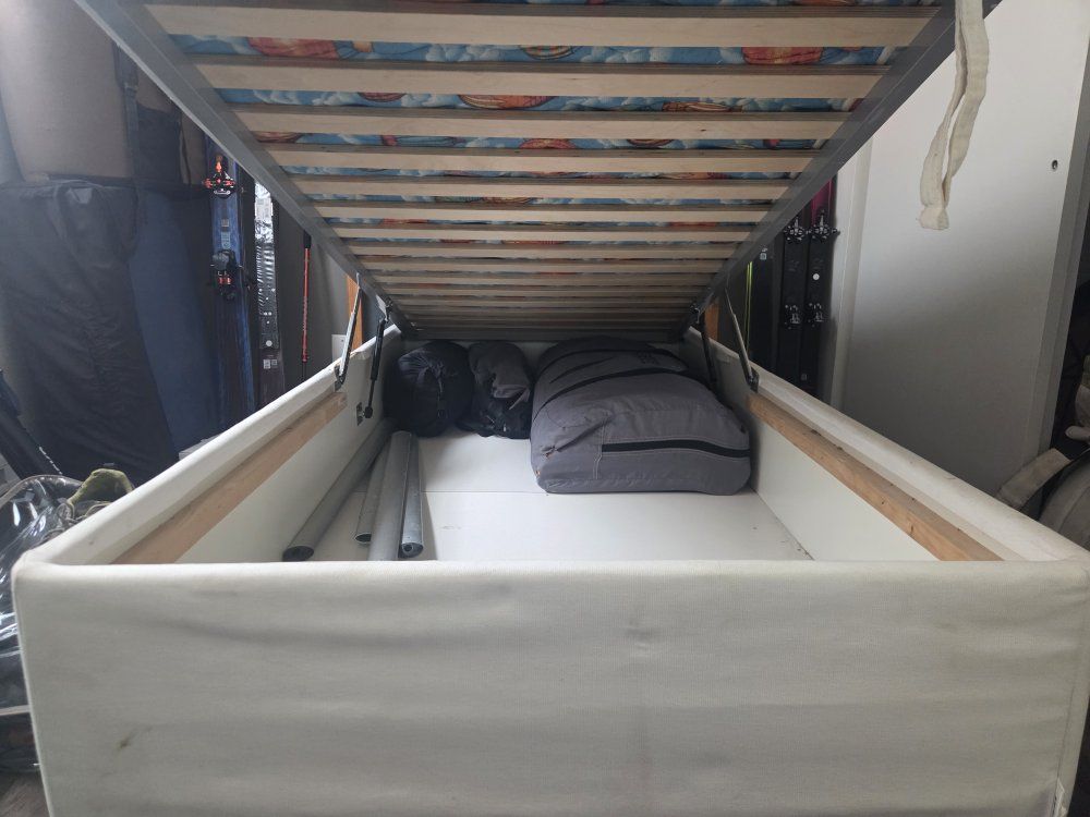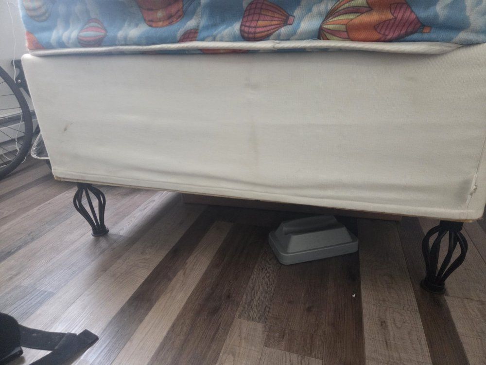 Twin bed frame with storage and mattress Frame has a storage space inside that raises easy from one end Buyer must be able to take it away themselves. I can help get it out of my apartment and down the stairs and into vehicle