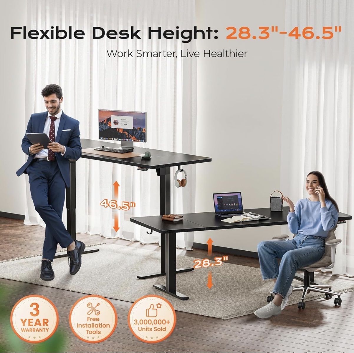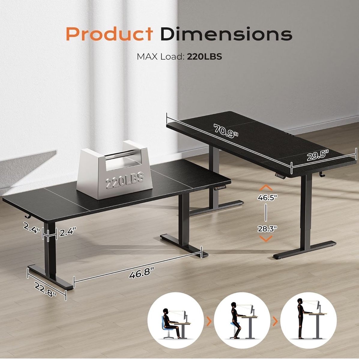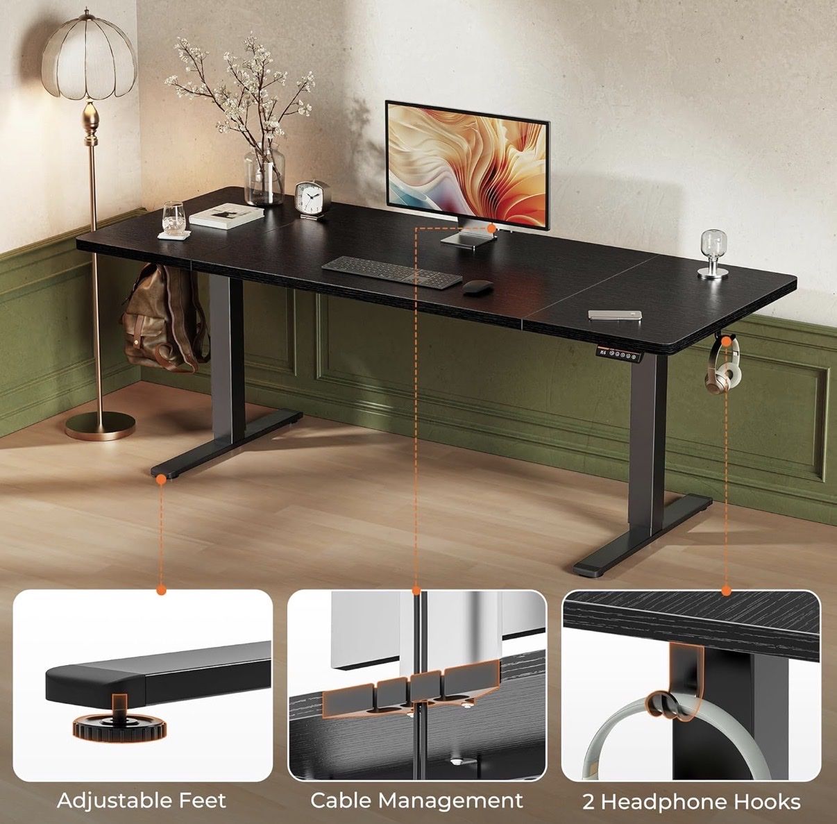 VenmoBrand New in the Box 71 x 30 Large Electric Standing Desk, Height Adjustable Computer Desk, 29.5" Deep Desktop, Stand up Gaming Office Table with 2 Hooks, 3 Preset Heights, for Home Office, Black
