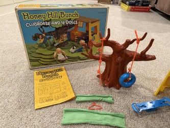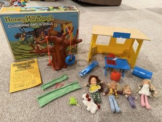VenmoClubhouse set with original box, instruction booklet, clubhouse, tree, accessories, and all four dolls and pets in great condition.