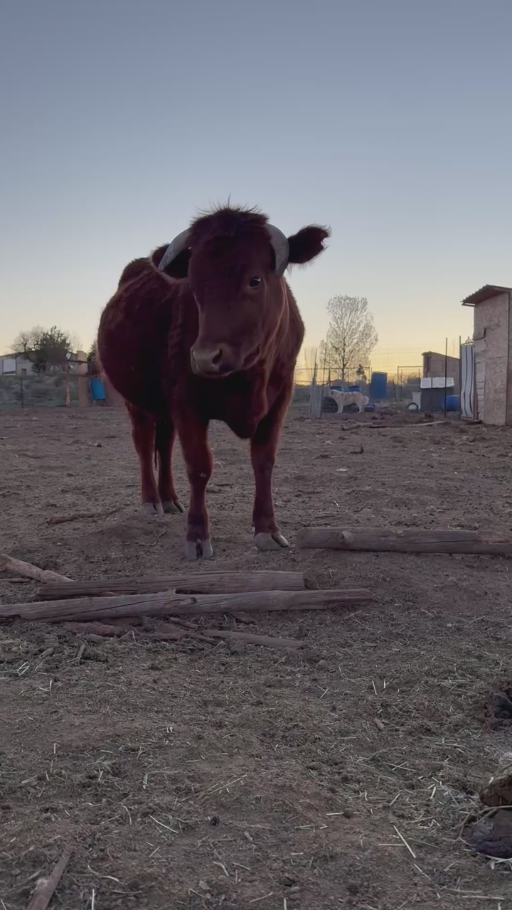 Maisee is our Mini Jersey/Highland. She has been breed by Yugi and her milk sack is starting to develop. She is sweet. She has started to come up to us and lick. We have loved having her and were hoping to make her our family milk cow.