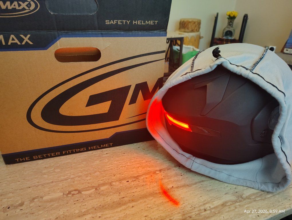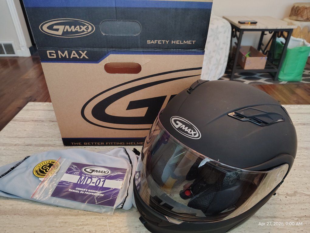 VenmoGMax Safety Helmet. Adult worn three times. Has red led light on the back with several modes, strobe and a few others. Flat Black with a clear and dark shield built in. Like new in original box with documentation. Size Medium. We accept Cash and Venmo. $150. Thanks for looking