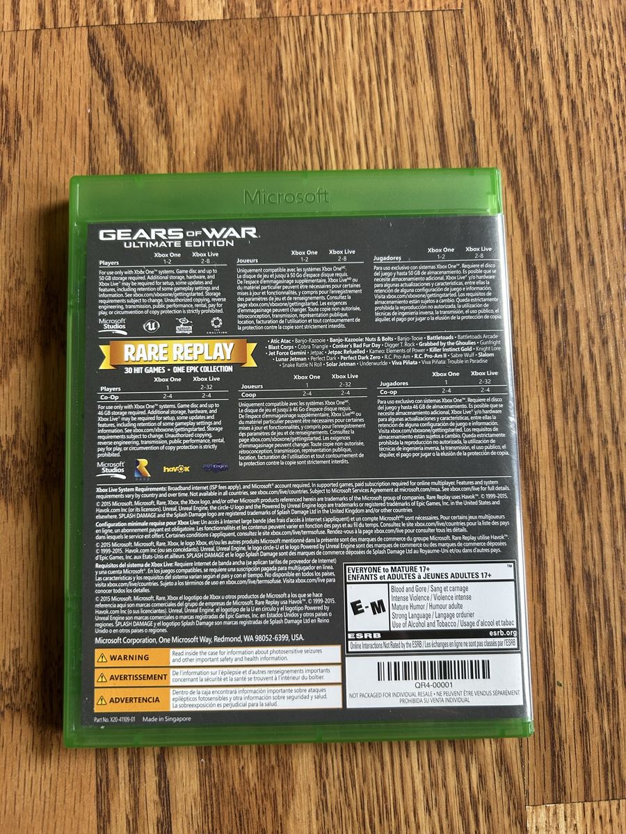 VenmoIn like new condition Xbox one two disc set gears of war, ultimate edition and rare replay. 30 hit games. Clean smoke free. Cash or Venmo. Located in and picked up from Alpine.