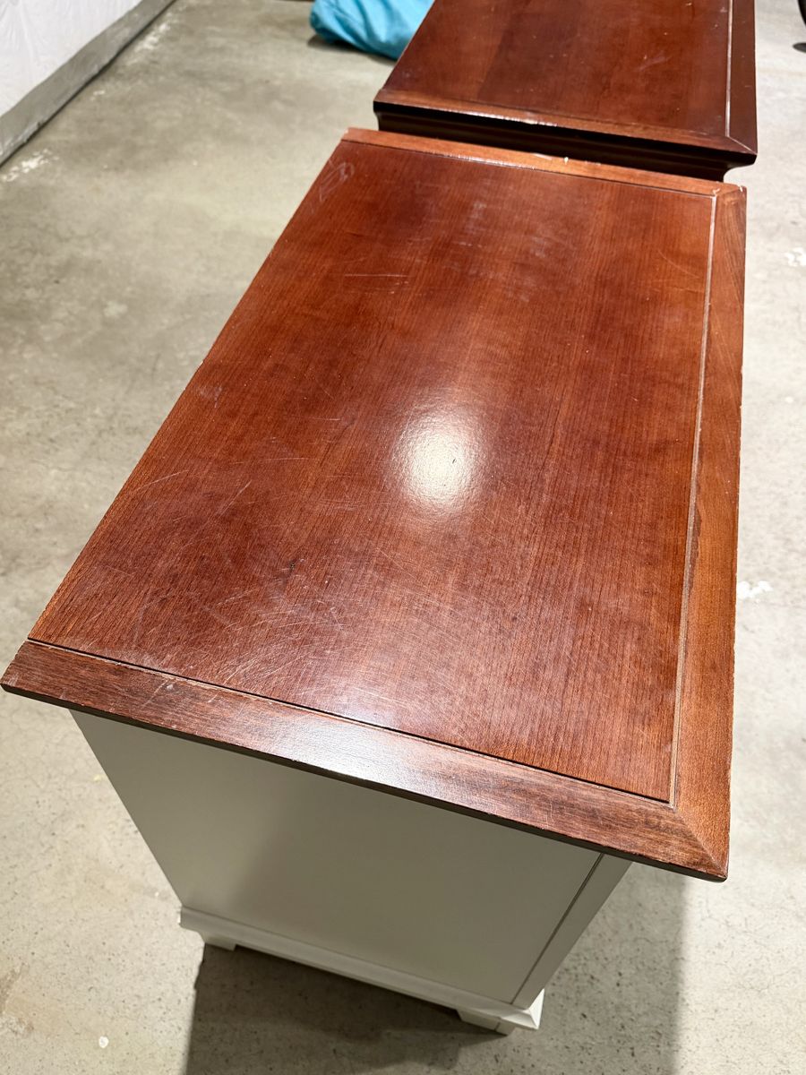 Cosmetically, they show signs of use, as can be seen in the photos. Including seperation of a section veneer on one of the legs.