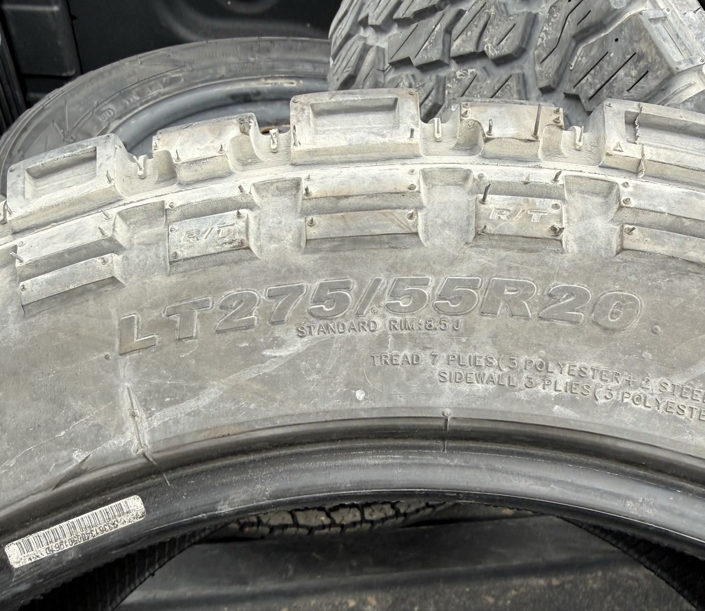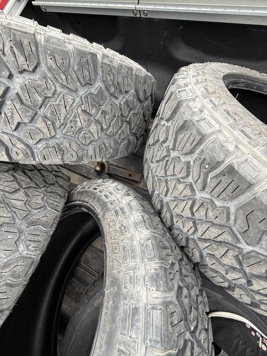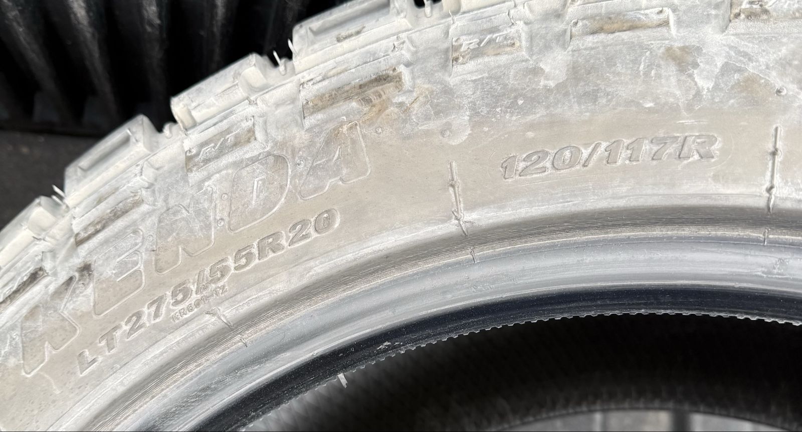 Rugged Kenda R/T tires for sale. These are LT275/55R20 size and you get all four. They have deep tread, good for off-roading. Also has the Triple Threat Sidewalls.