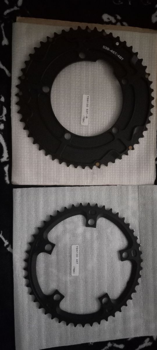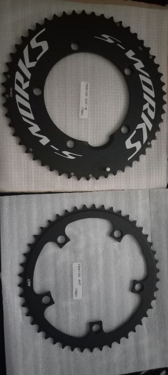 Specialized S-Works chainring set 53x46 New. Never installed. 130bcd. No codes. Cash only. Thanks for looking