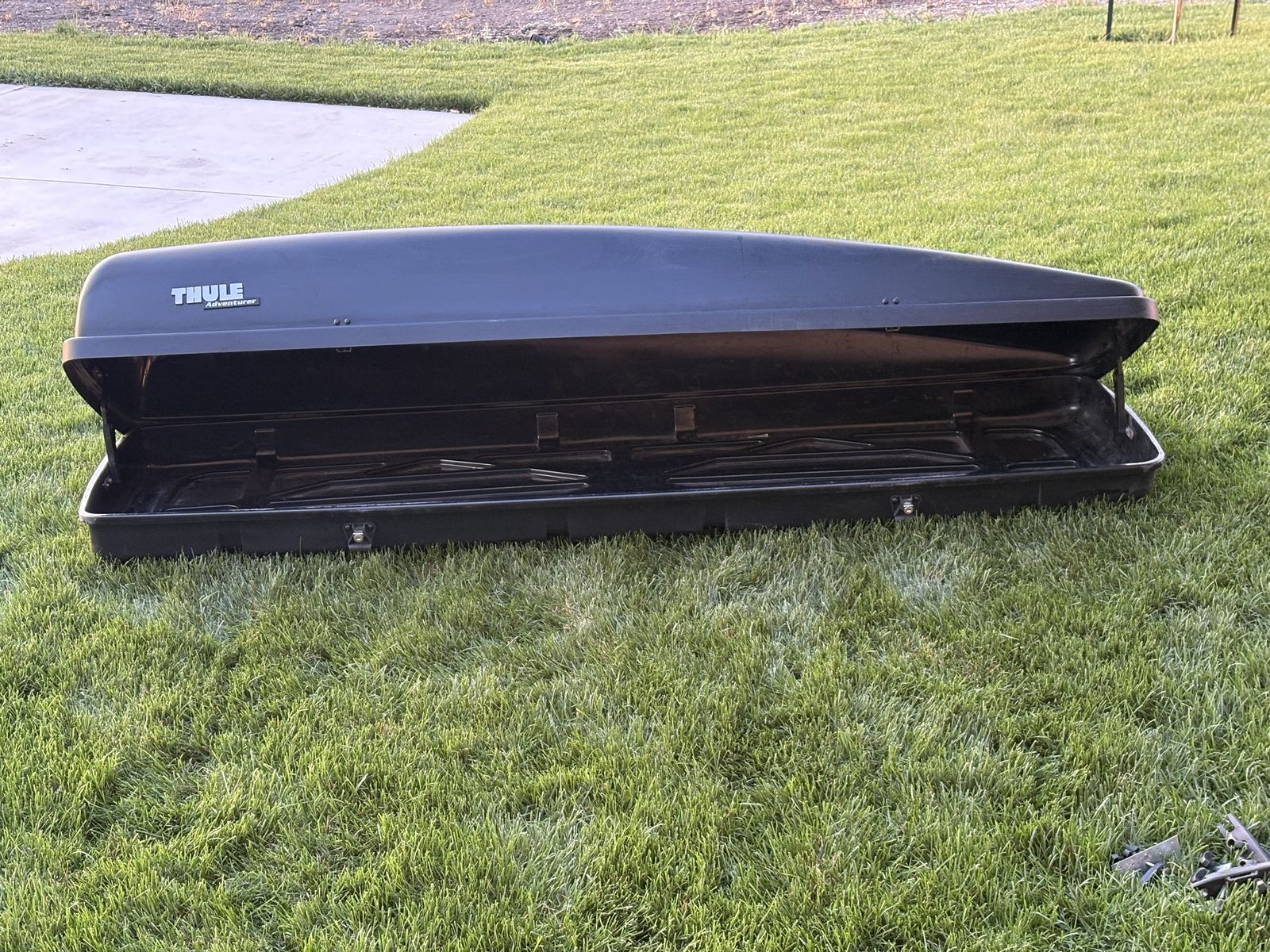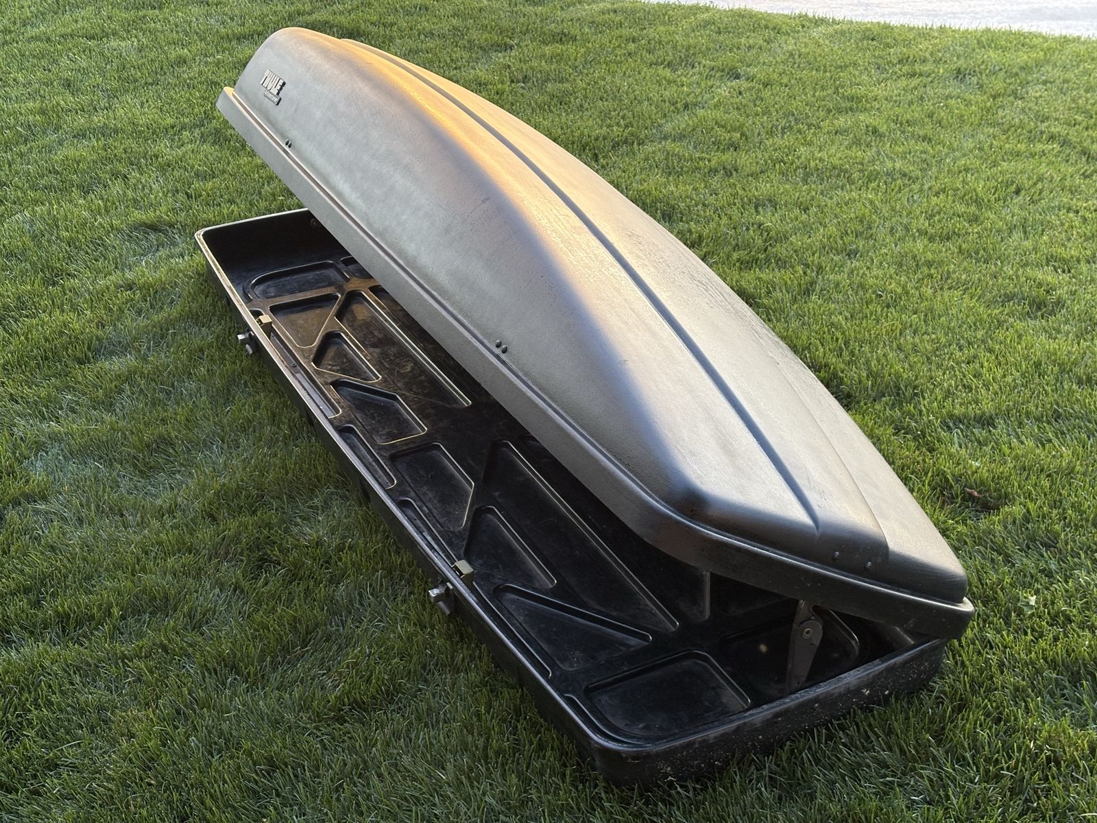VenmoThule Adventurer Cargo Box – XL Capacity – Hard to Find Large-capacity Thule Adventurer Cargo Box in solid condition. One of the biggest boxes Thule made—great for road trips, camping gear, skis, or extra family storage. •Massive storage space •Durable, aerodynamic design •Locking lid, opens/closes smoothly •Clean with normal wear for its age Fitment: Designed for classic square crossbars only (older Thule style). Discontinued around 2001—these don’t come up often, especially in good working shape.