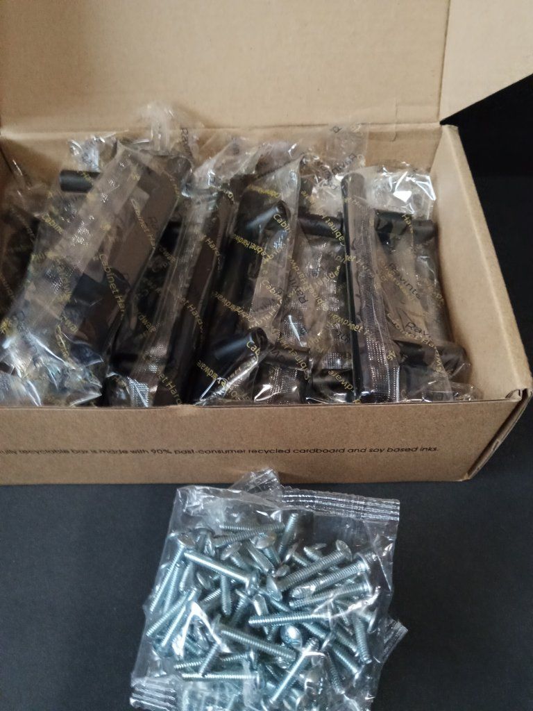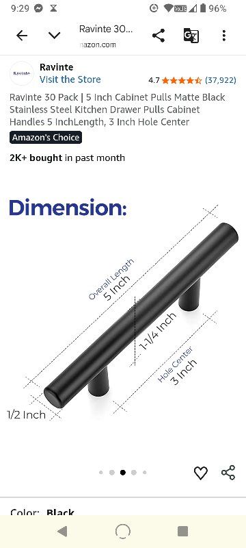 NEW Ravinte 5-inch black matte stainless steel cabinet pulls have a classic look that will match a variety of designs for cabinets and kitchen drawers. 3-inch center hole. Screws included.