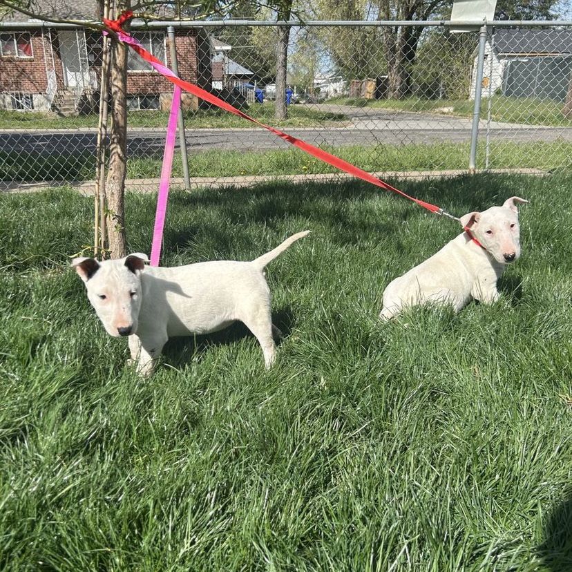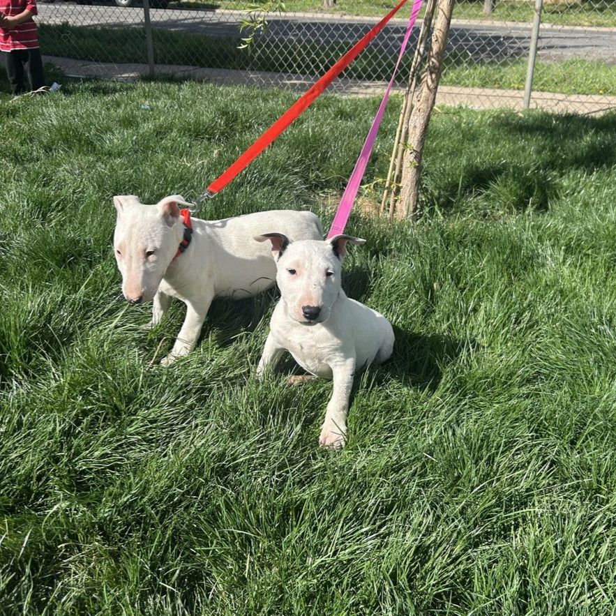 ApplePayI have two beautiful Pure bred bull terrier female puppies! Born jan31st one all solid white Other all white with black spot on both ears very gorgeous girls the are very smart good around kids and other dogs Great frame and structure very healthy n up to date on their parvo n shots. They are being potty trained as well as kennel trained doing really good keeping their kennels clean and bed cleaned when out of kennel. I do have a run with house out back for when I take them out or when I leave or I’ll keep them inside in their kennels they both have their own which will be included when they go to their new homes as well as there bowls, leash, collar and their toy! Asking price $800 O.B.O !mom dad on site