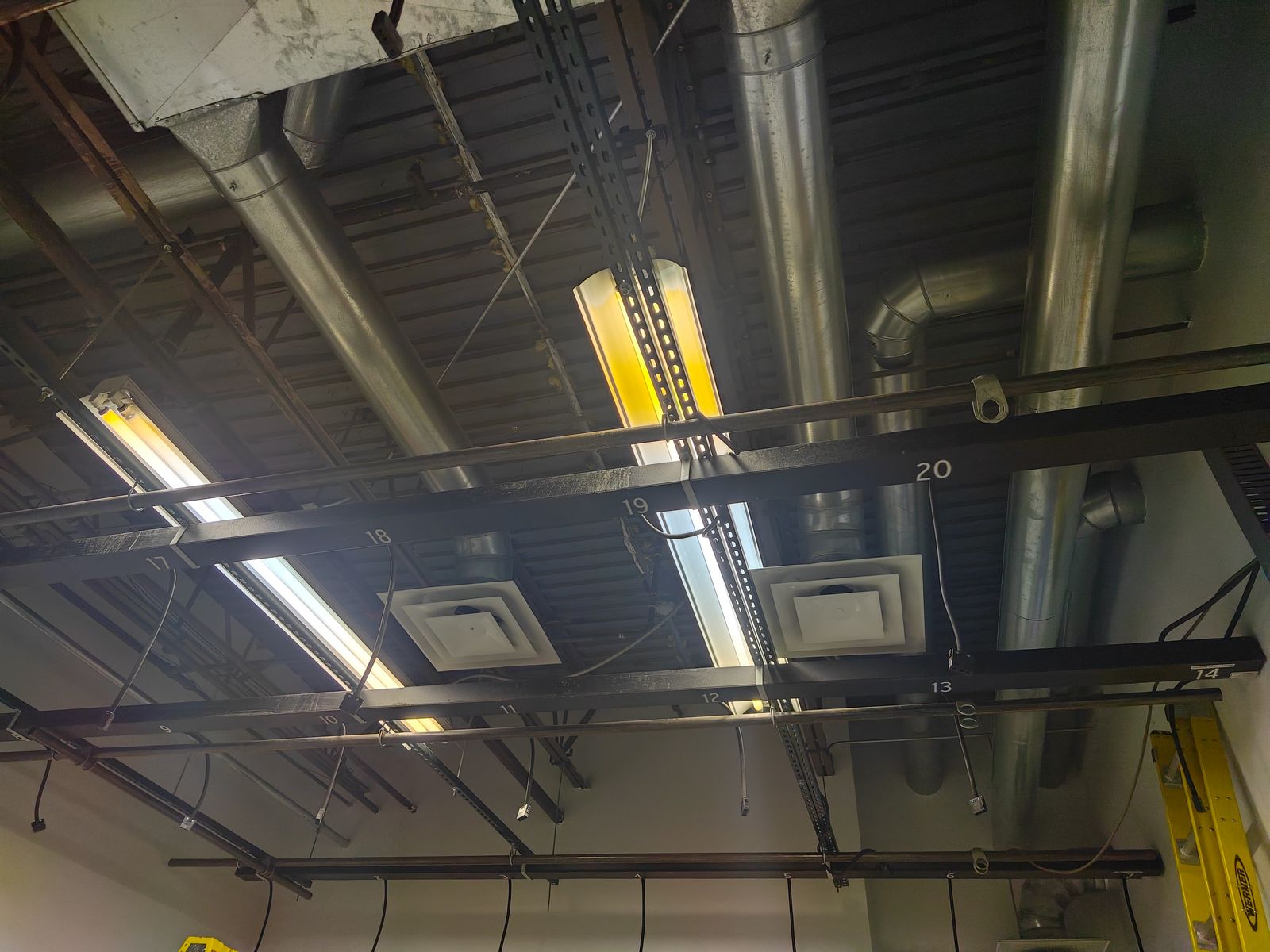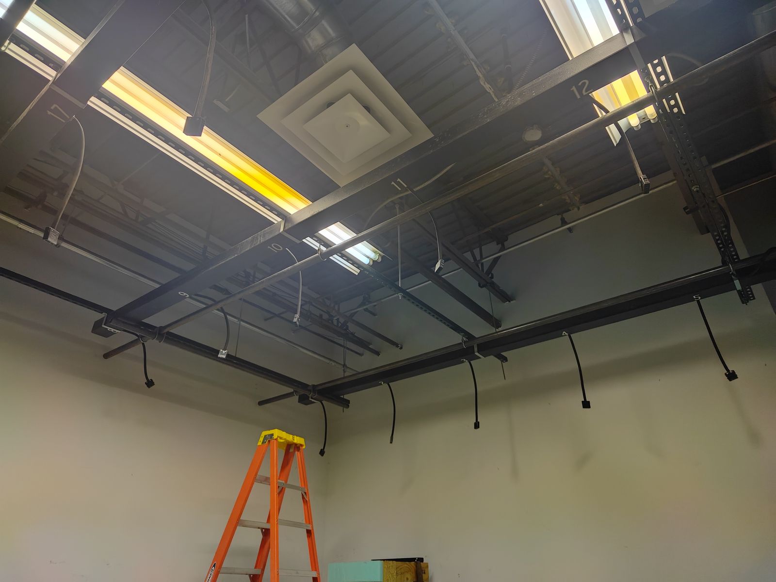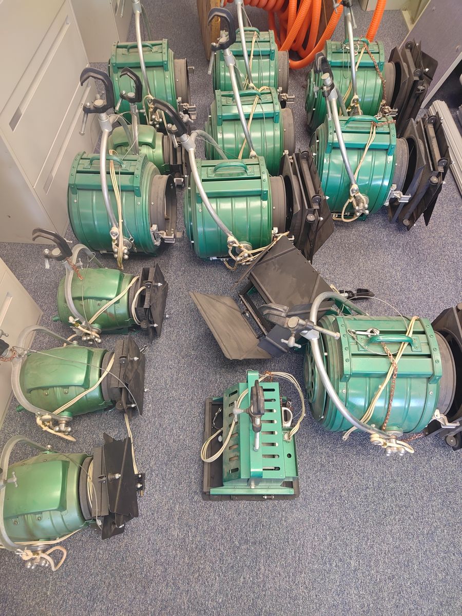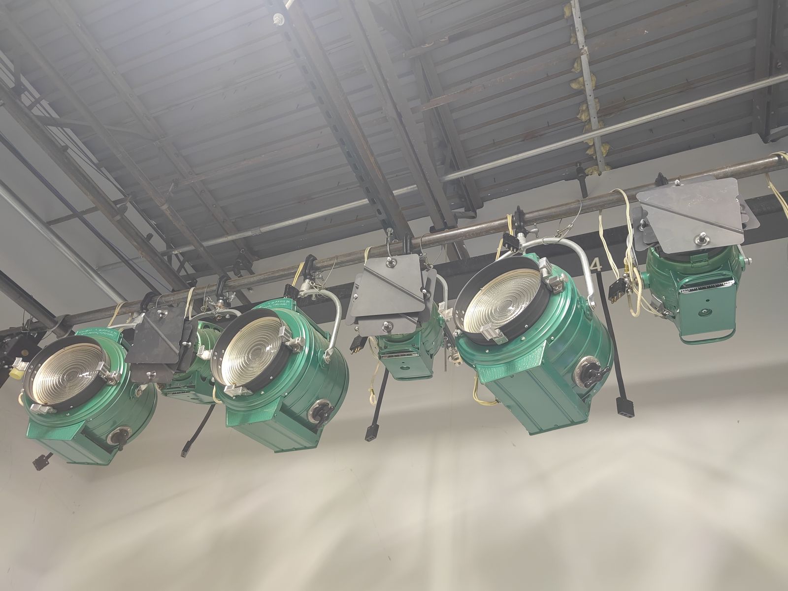 GooglePayPreplumbed lighting grid wired for 30 lights. Has 8x 2000w vintage Bardwell & McAlister lights 6x 1000w vintage B&M lights. Grid has prewired channeling pulled from a 20x20 television studio.