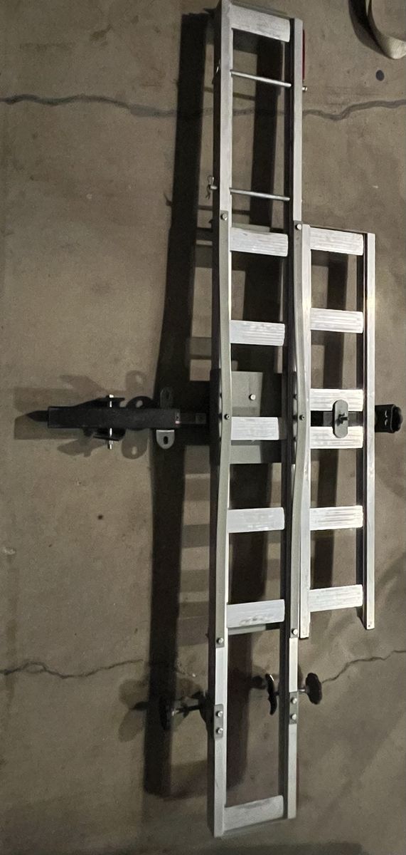 VenmoThis Haul Master motorcycle carrier is in excellent condition and come with everything it had new. It has only been used a couple of times and has been stored indoors. It is rated up to a 400lb motorcycle. It comes with an on board ramp for easy loading and the front tire clamps are a great addition to straps to secure the bike on the rack. It fits 2” receivers. It has adjustable pins to accommodate all tire sizes. This includes kid bikes and scooters as well as full-size motorcycles.