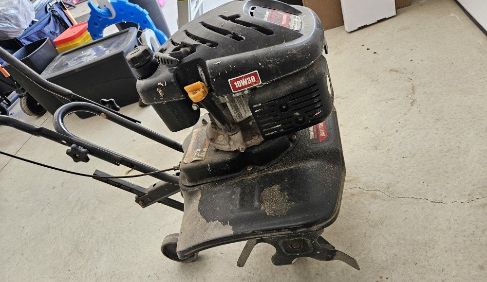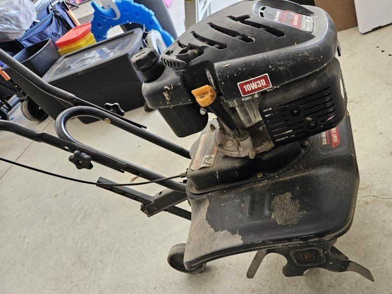 Yard Machine tiller. Needs a new carb or carb cleaning.