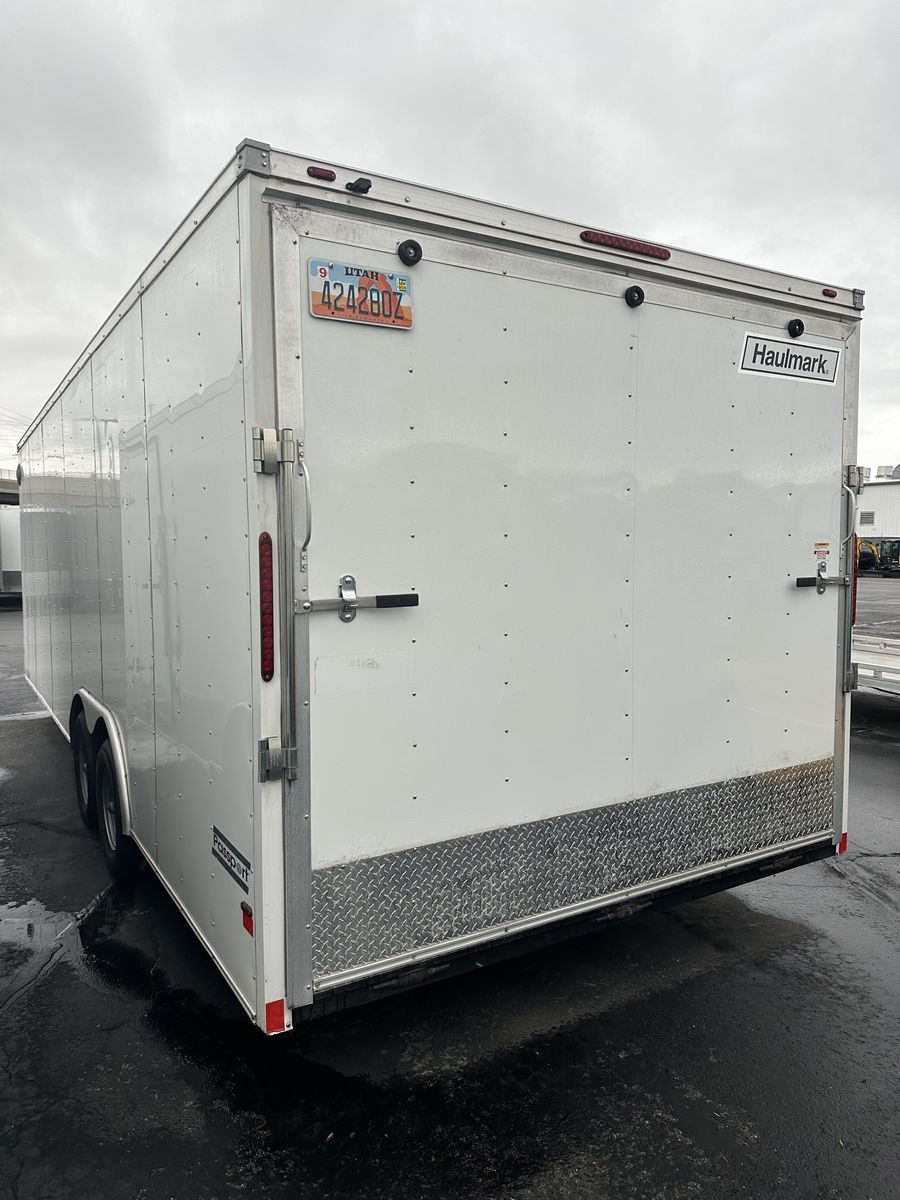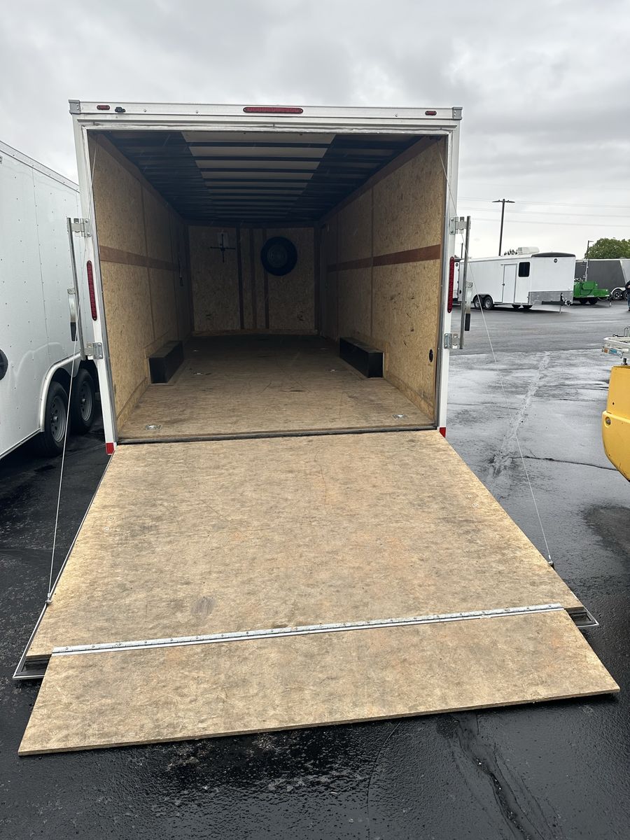Looking for a used almost new trailer? We are selling our rental 8.5x24 enclosed trailer. Recently replaced leaf springs, has a spare tire and cross lug wrench already mounted inside. It has 6 D-Ring tie downs rated for 5,000lbs. each. Ramp door with extension flap. 7ft interior height. Perfect for someone wanting an almost new trailer at a good price for hauling ATV’s or for a work trailer for landscaping, construction, contracting, etc.\