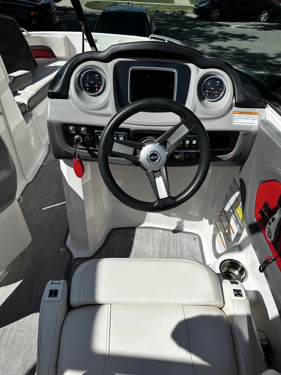 The Vortex 243 is known for its massive surf wave, jet-drive safety, spacious layout, and premium Chaparral build quality. Whether you’re surfing, boarding, or spending long days on the water with family and friends, this boat delivers.