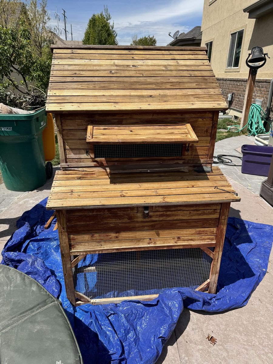 ApplePayChicken coop about 5-6 years old. Bought from The Chicken Coop Company, which they sell for around$1,000.