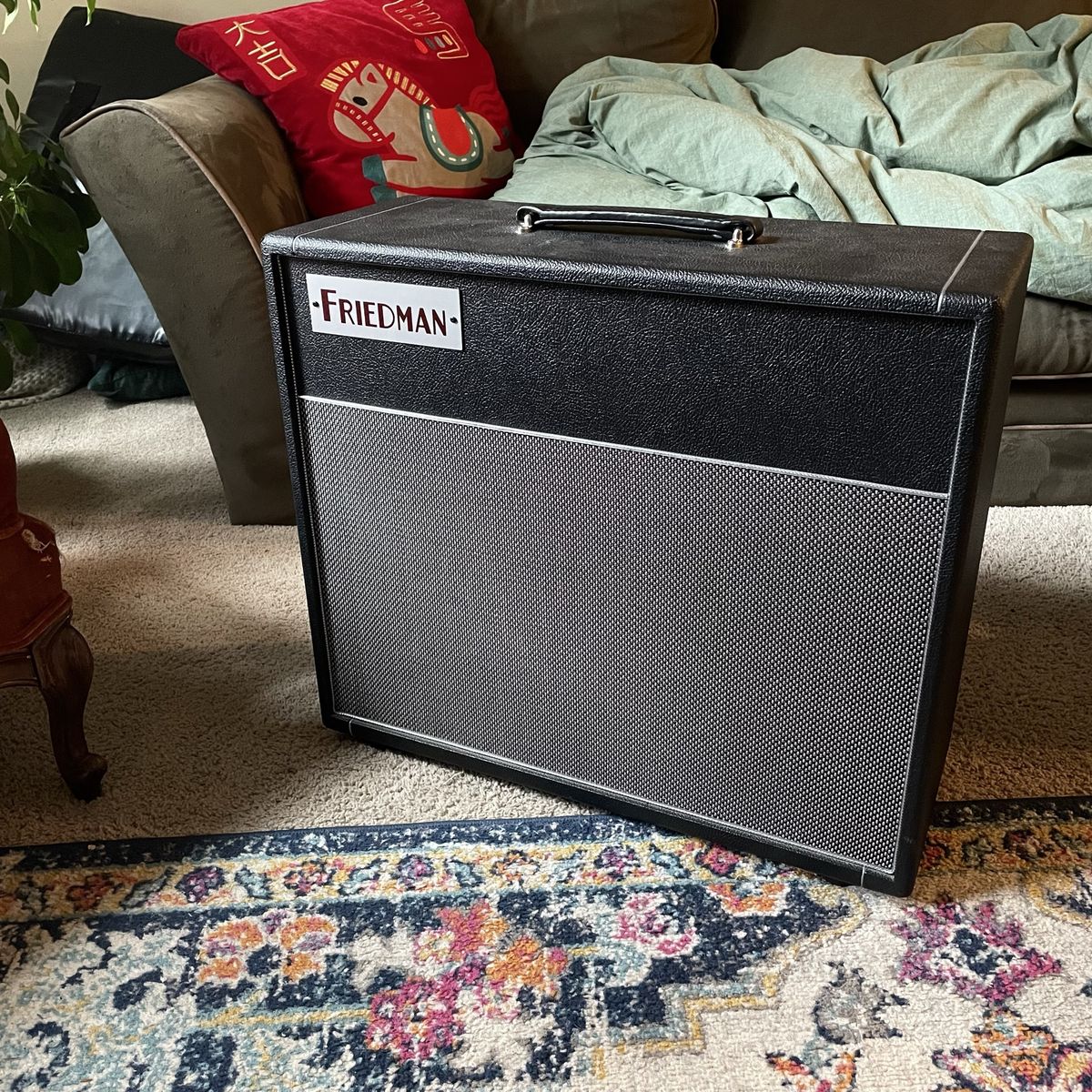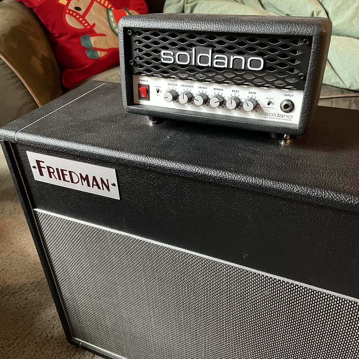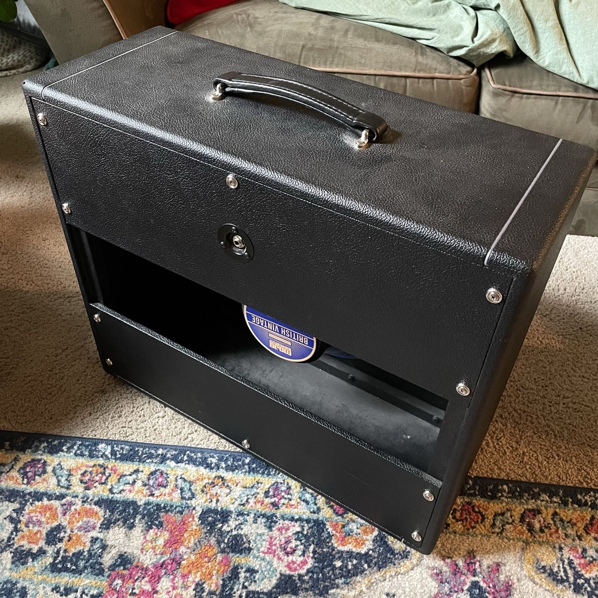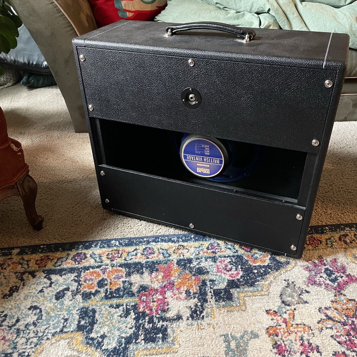 Awesome cabinet Sounds excellent Has one of the best greenback clones ever for that vintage greenback tone The Soldano head sounds amazing in this and is for sale as well for a bundle deal I also have a Celestion Vintage 30 for sale if you prefer that.