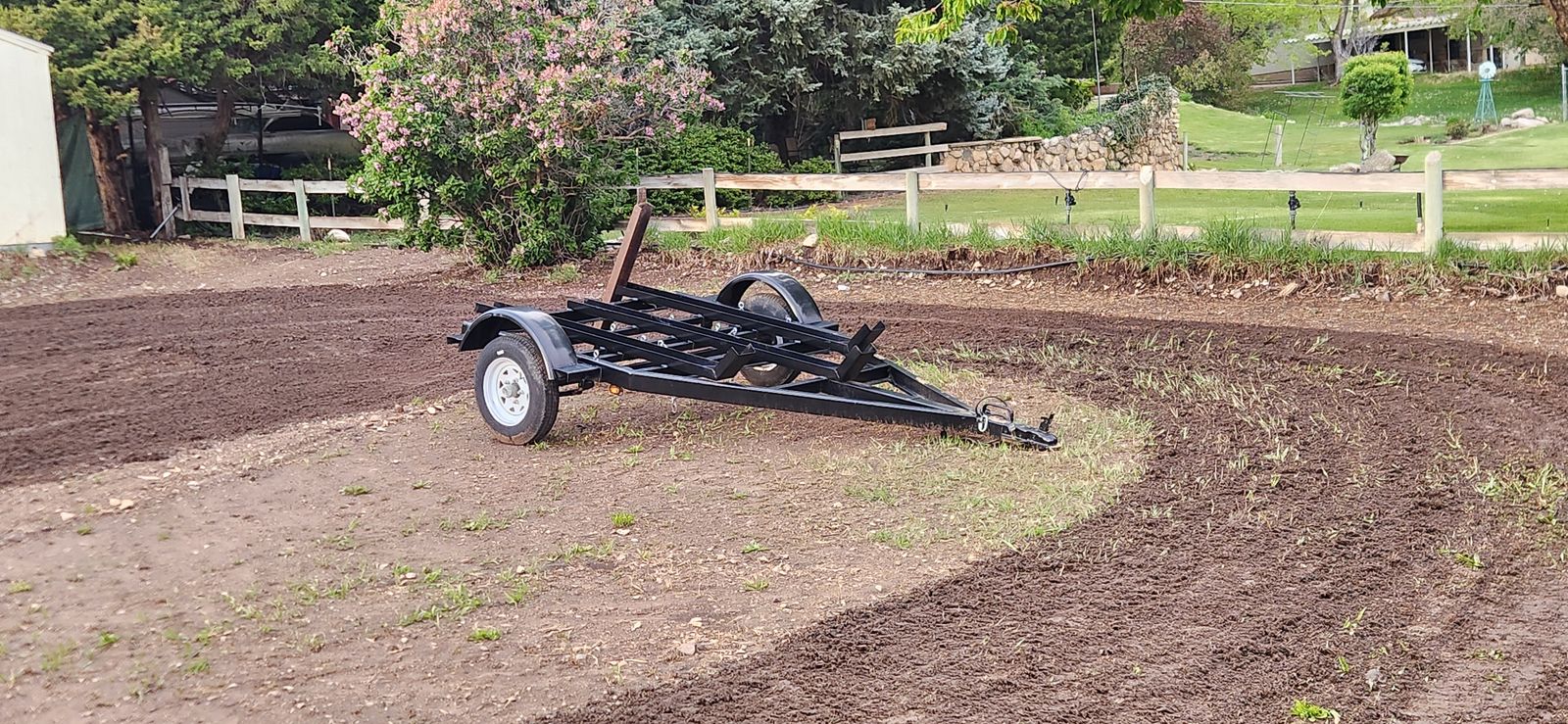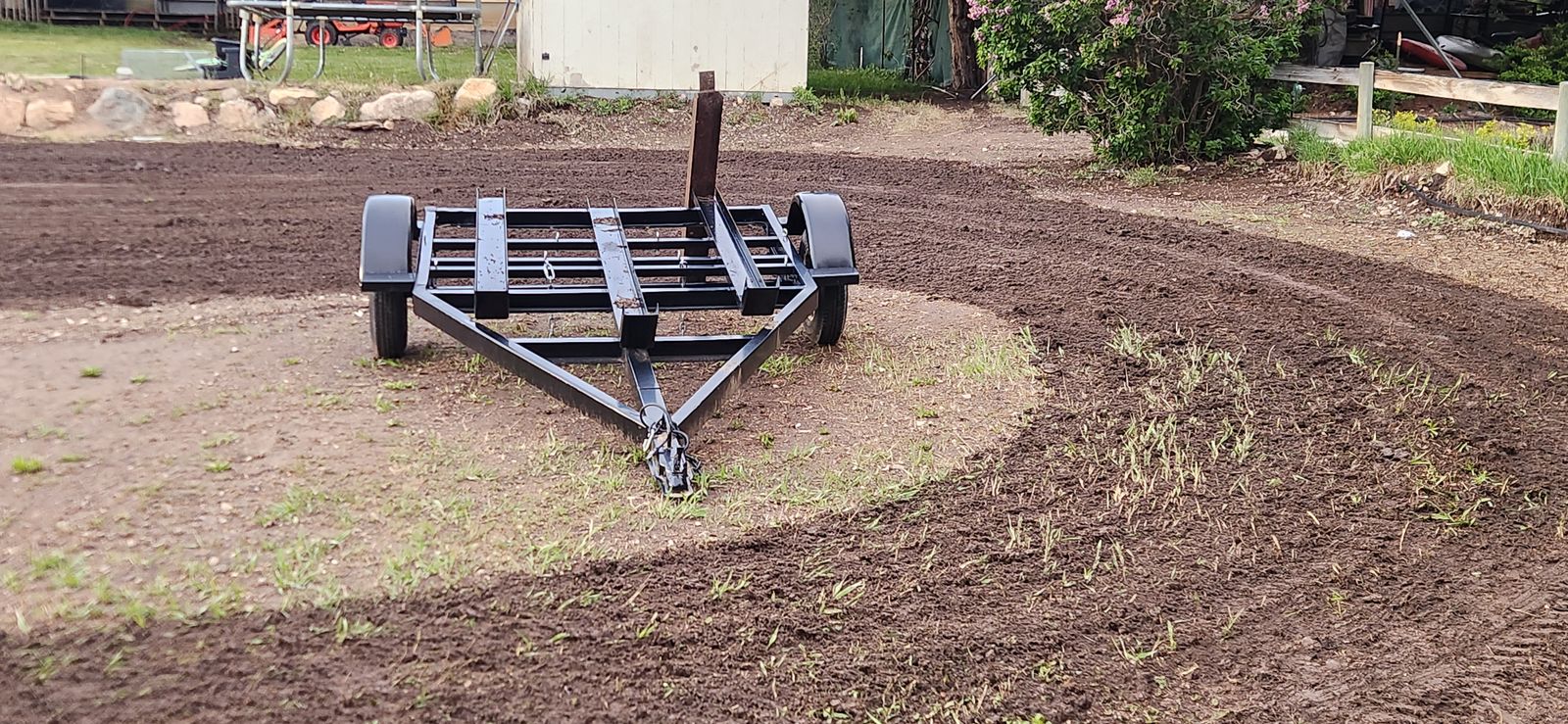 3 place motorcycle trailer. New hubs, wheels, tires and LED lights. It was stripped and powdercoated last year. There are multiple tie down points for all size bikes.Similar to the picture, they are designed to attach to the pegs, not the handlebars or triple clamp.