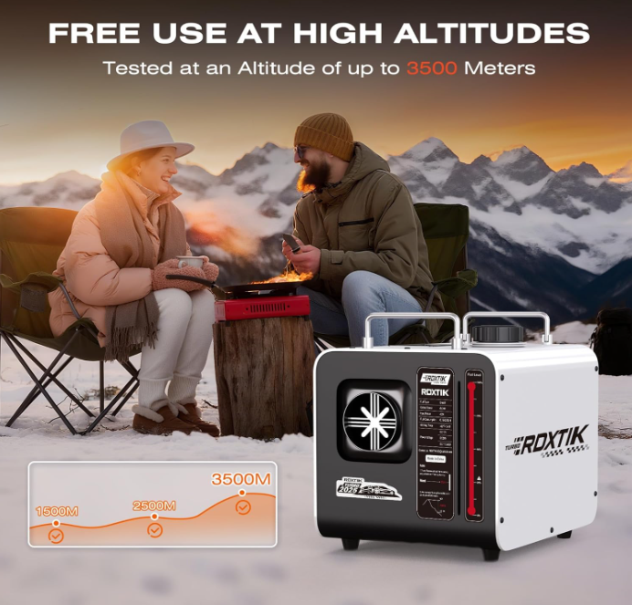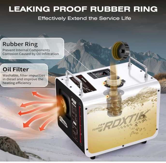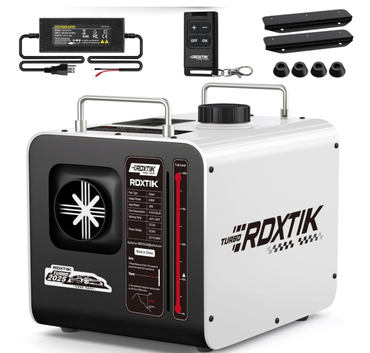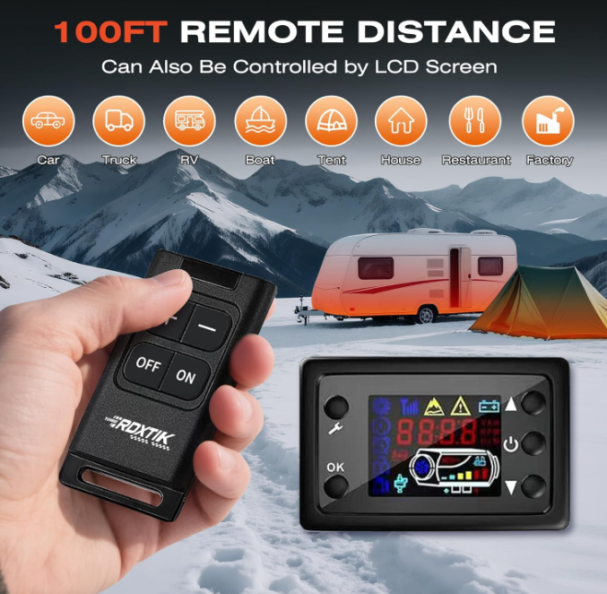 ZelleMultiple Voltage Options: This diesel heater not only supports 12V and 24V voltages but also includes a 110-240V transformer, allowing you to use it quickly at home or while driving. Additionally, it features thermostatic control, timing function, preheating, and overheat protection of ≥518°F/270°C, ensuring a safe and comfortable experience throughout the night.