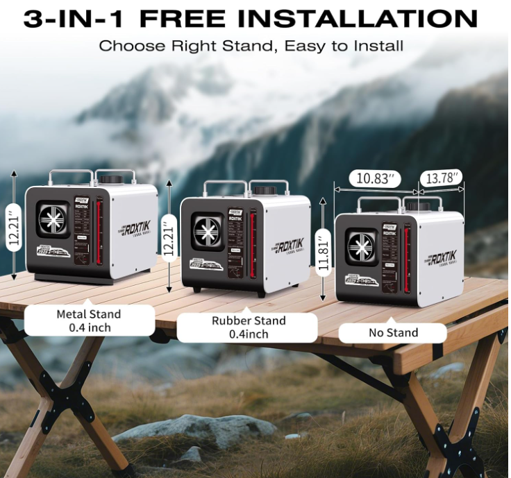 All-In-One Unit: Our diesel heater offers efficient heating without the need for installation, making it ideal for outdoor adventures such as camping. This 8000w diesel heater provides continuous heating during operation, with fuel consumption ranging from 0.18 to 0.53 liters per hour. The temperature adjustment range is 46.4°F-96.8°F/8°C-36°C, allowing you to meet your specific needs.