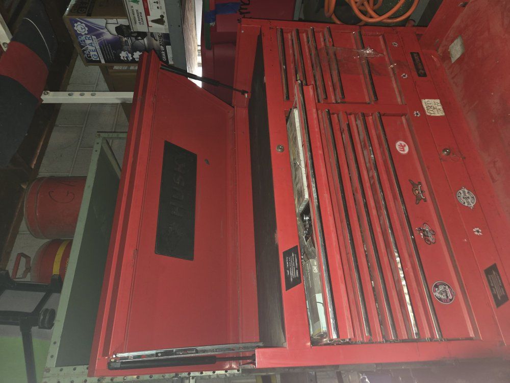 CashAppthe drawers are all there. the only thing really wrong with it is the top part doesnt stay open and needs something to lean on to stay open. other than that it is in fair condition.