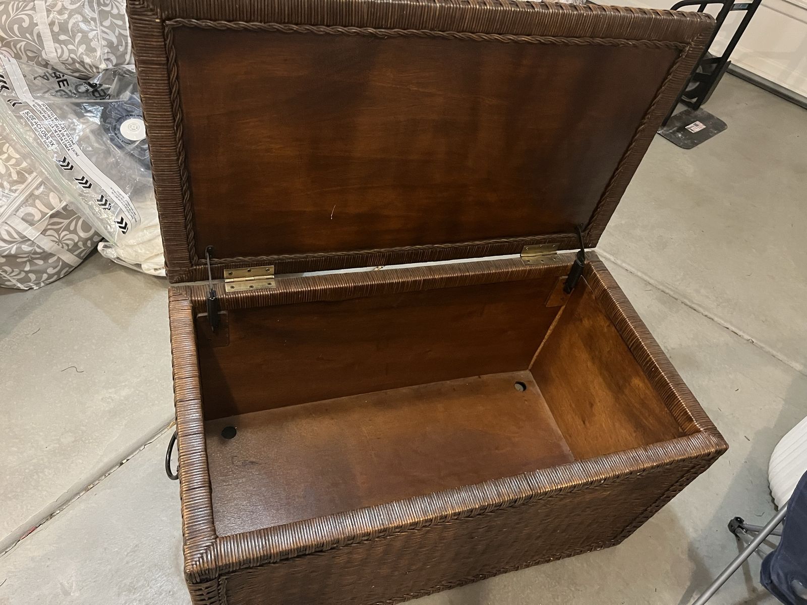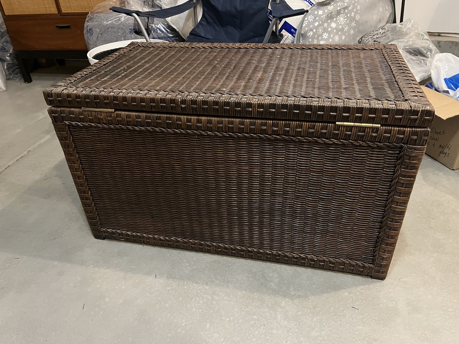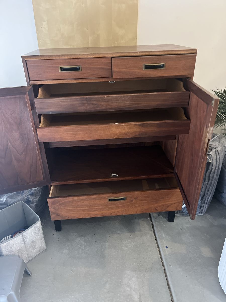 Queen sleeper sofa$250, glass coffee table $40, upright dresser $50, kitchen table $35, indoor/outdoor chest $25