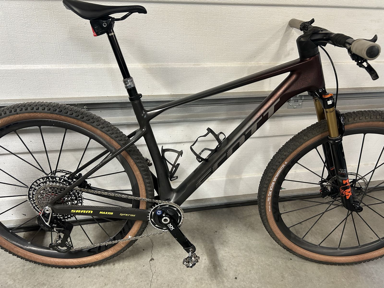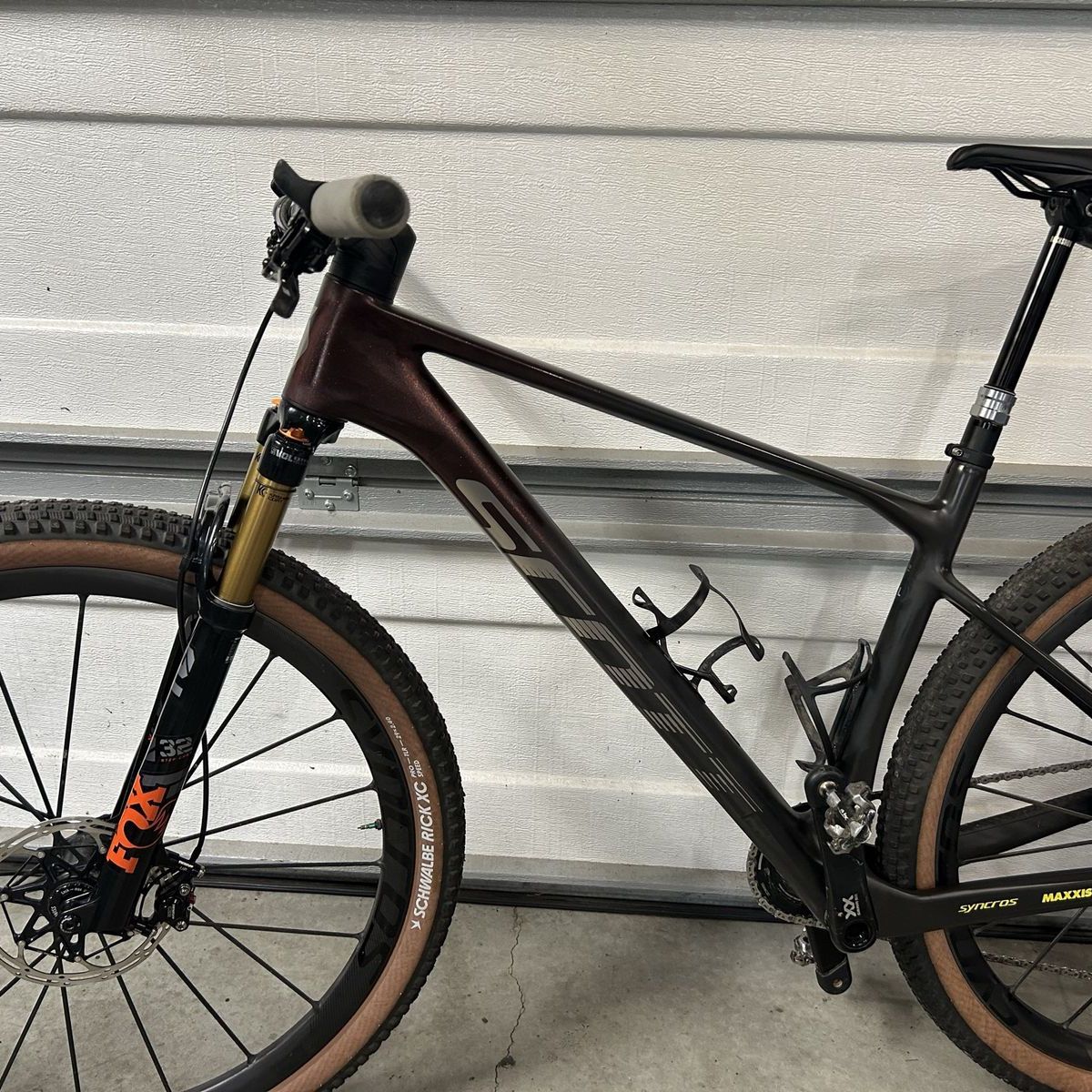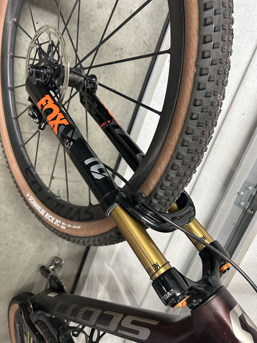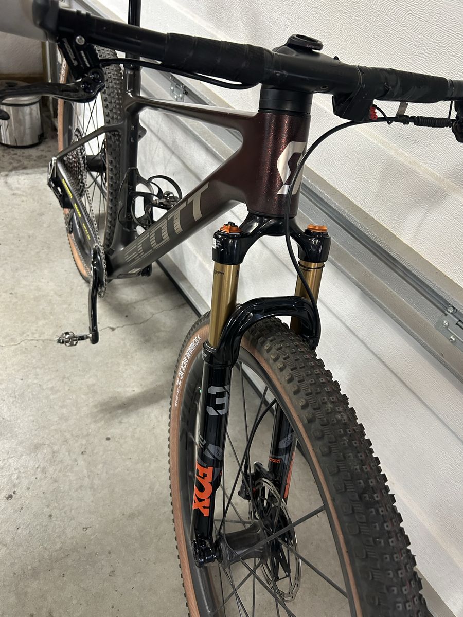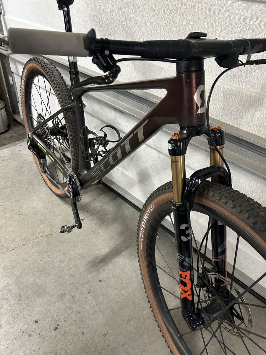 I’m selling my ultra light Scott Scale hardtail size large I raced this at Leadville and had it set up sub 19 lbs everything you see is included I have 2 forks The one off the bike is stock I used the other one to eliminate the twin loc cable I also set up the sram axs dropper with the remote blip box (see pic) also included is the stock seat and high post. The brakes are the trick stuff brakes (they claim the lightest brakes you can buy). I was told by a Scott employee that they only made 100 of these bikes this is a rare opportunity to own an amazing bike