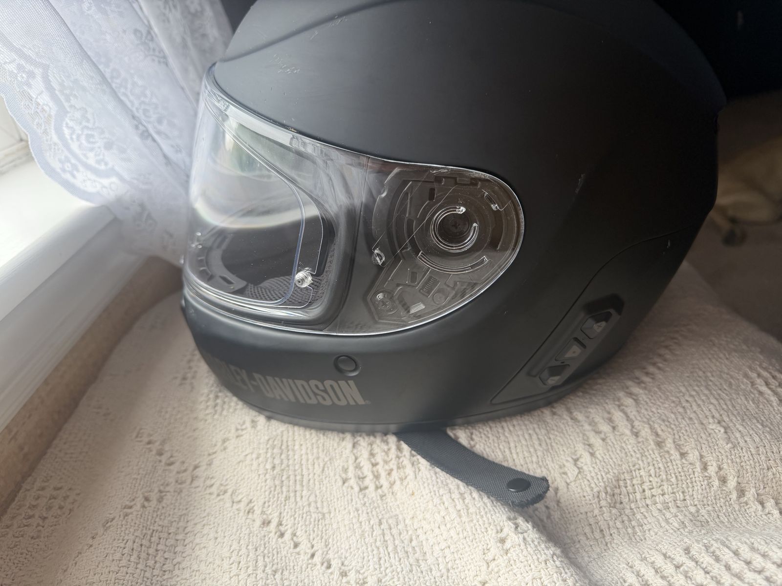 ApplePaySize- Large Model- Boom! Audio 30k No2 Comms- Sena 30k Bluetooth and mesh Extra tinted visor. I bought two of these one large one medium. The medium size was too big for the wife but fits me perfectly so this one has been sitting in the closet for a couple years they retailed for over $600 each from the dealer. The DOM is 10/2021. I know that manufacturer recommends that you replace them every 5 years, which sounds like a great marketing scheme, but I’m not falling for it. I trust my life to the medium and it’s seen plenty of use. This one has maybe 10 hours of use before sitting on the shelf in its bag. $200 is a steal and im firm on the price. Open to potential trades text me if you want a response I probably won’t see messages on this app for several days.