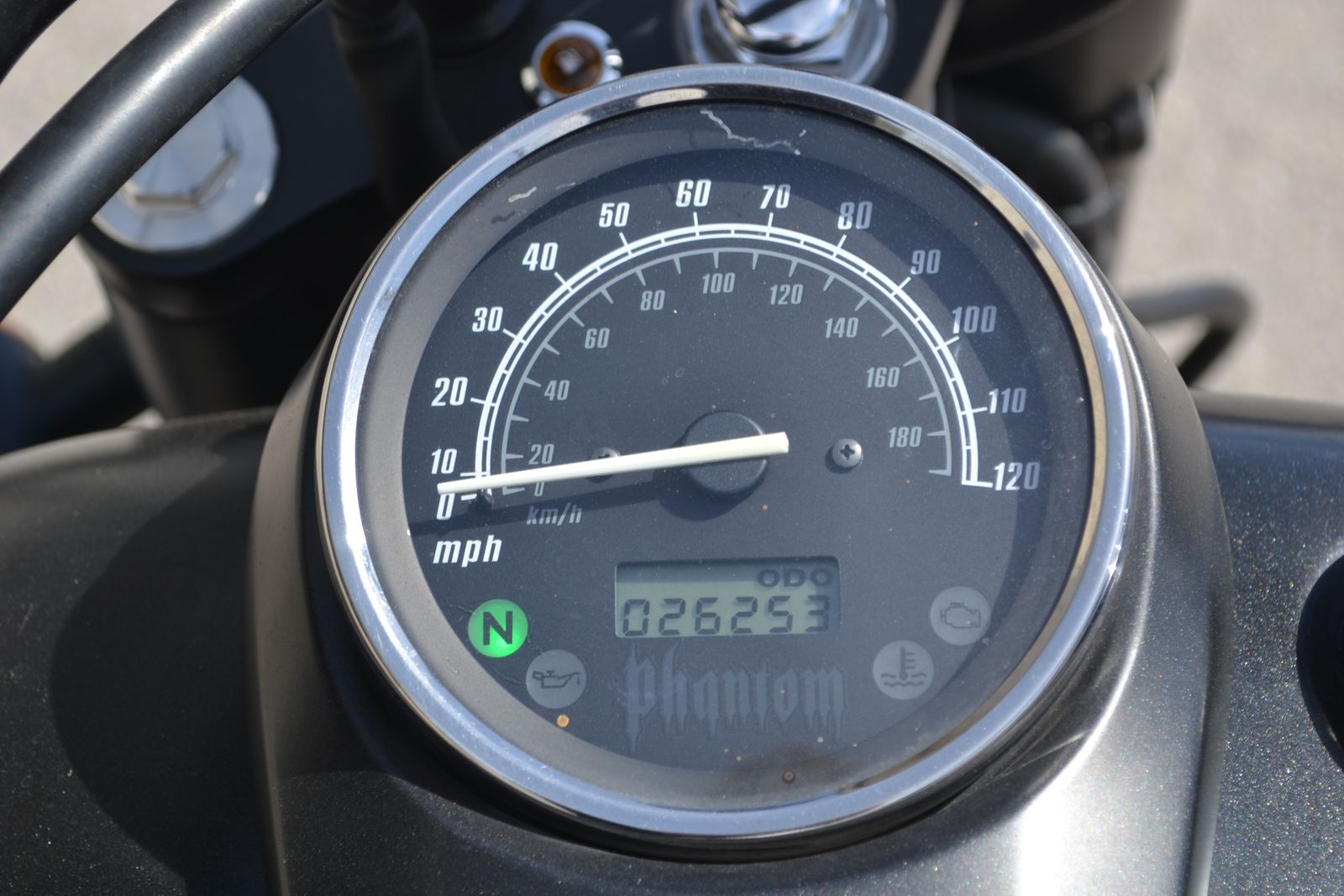 This Phantom is a super reliable and comfortable cruiser! It has an upgraded Mustang seat with a passenger backrest and luggage rack. The 750cc fuel injected engine runs smooth and sounds great with the upgraded Cobra exhaust. Just 26,200 miles and a clean title!