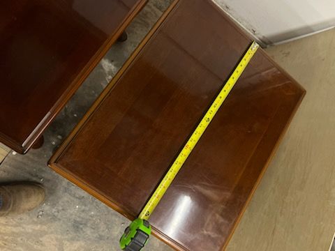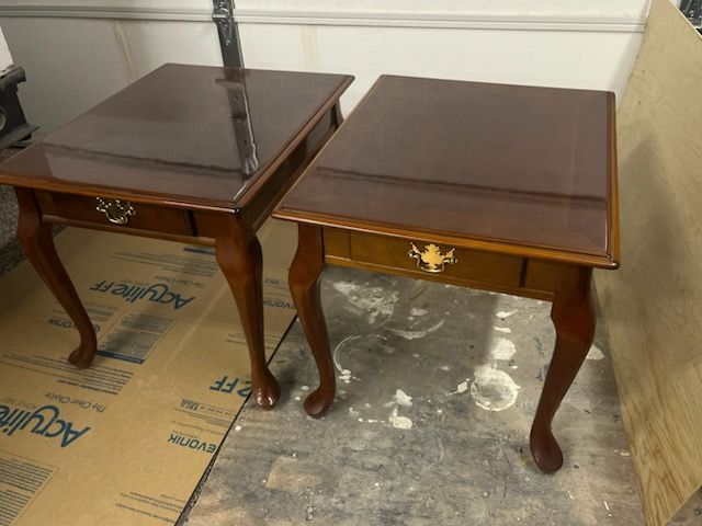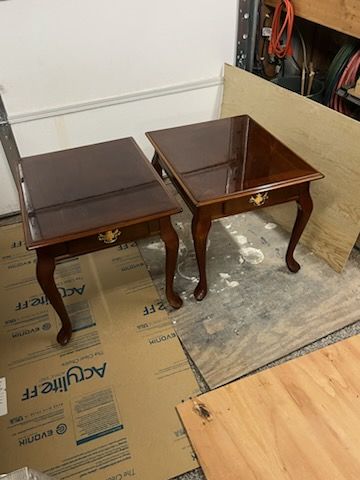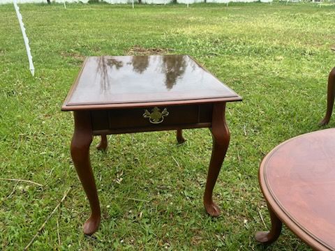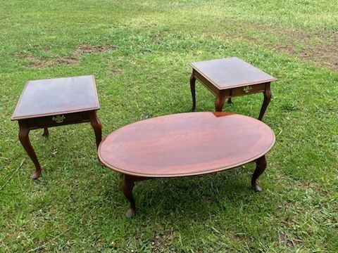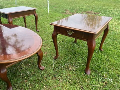 PayPalI have a beautiful coffee table with two matching end tables. The end tables have a drawer for your keepsakes. The coffe table is 45 inches wide, 26 inches wide and 15 inches tall. The end tables are 25 inches deep, 21 inches wide and 20 inches tall. They have been very well loved and all are in excellent condition. Asking $35 for all three pieces.