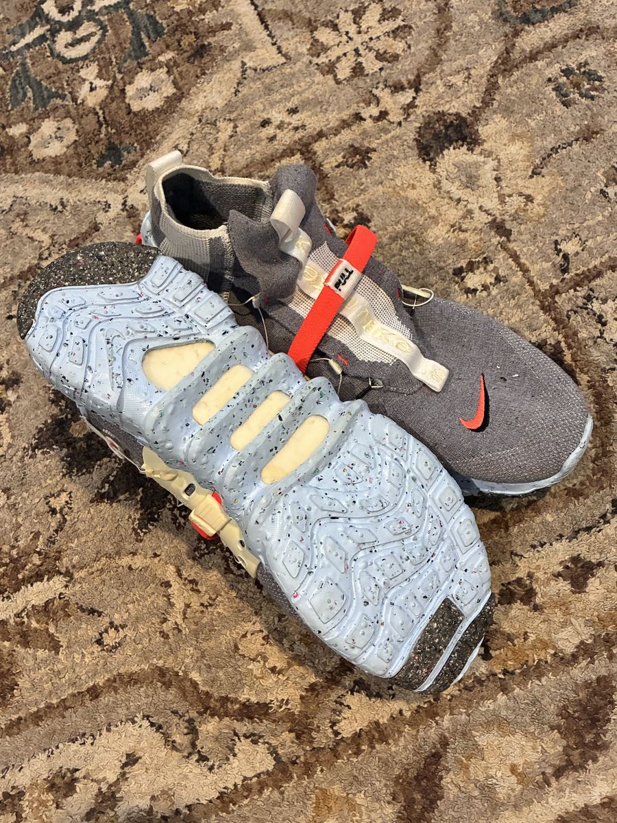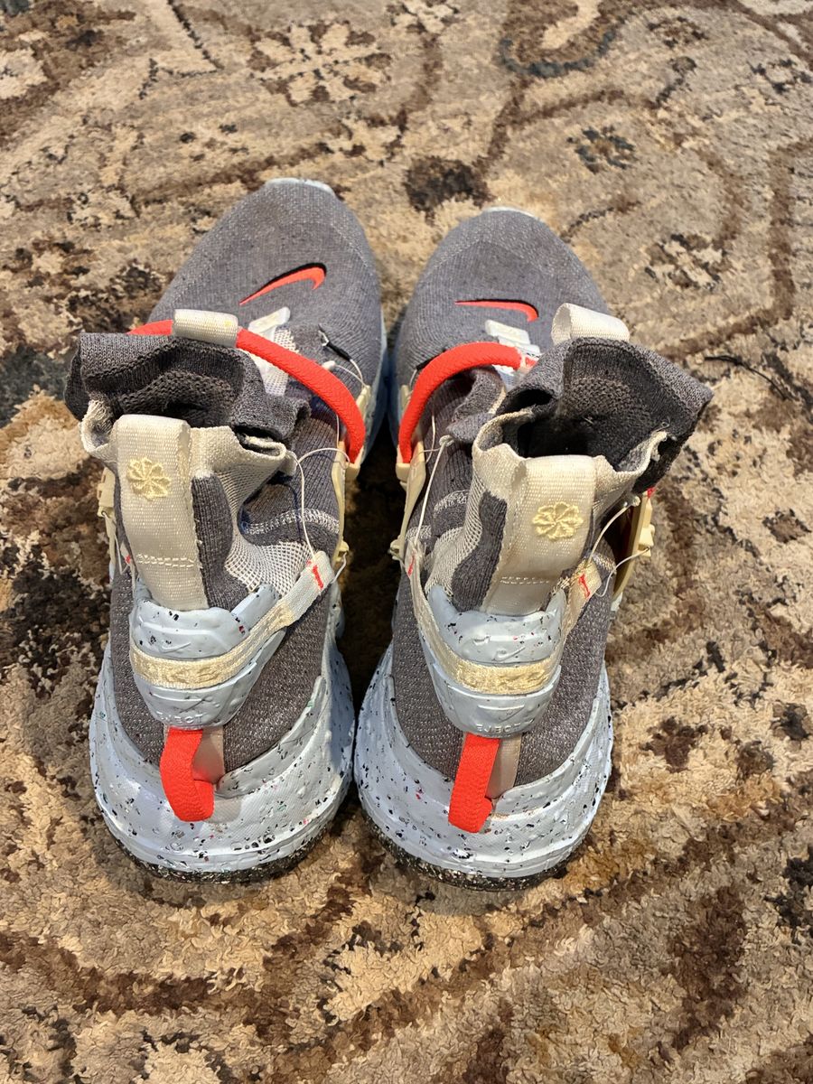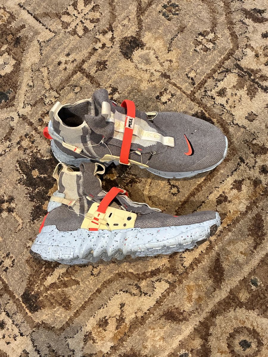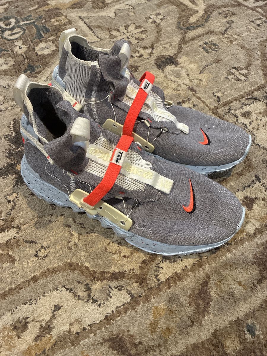 PayPalBrand new Nike Space Hippie sneakers, never worn—just no box. Super lightweight and comfortable with Nike’s recycled “Move to Zero” design. SIZE 15 • Color: Grey with orange accents • Condition: NEW (no box) • Clean, no flaws