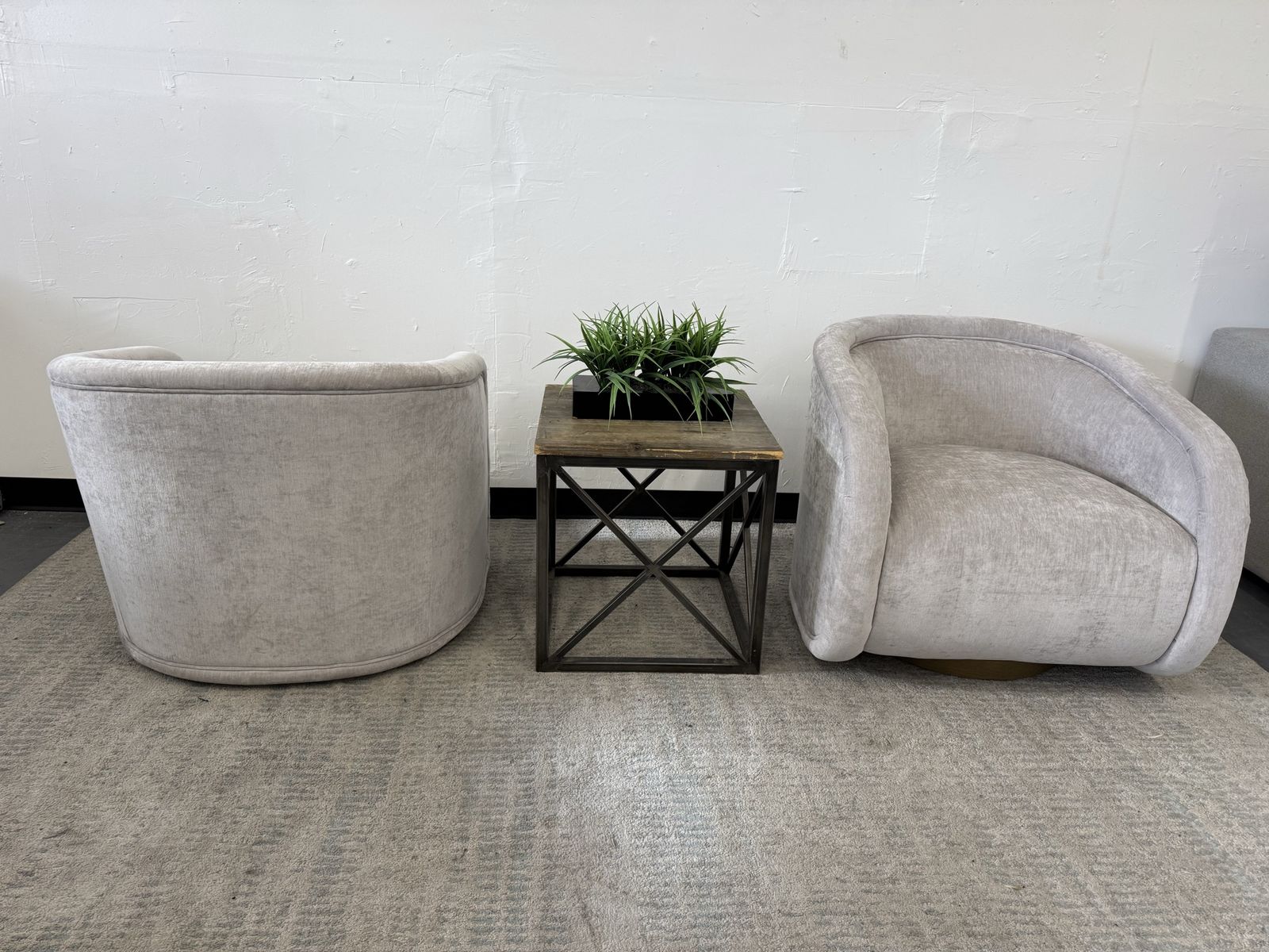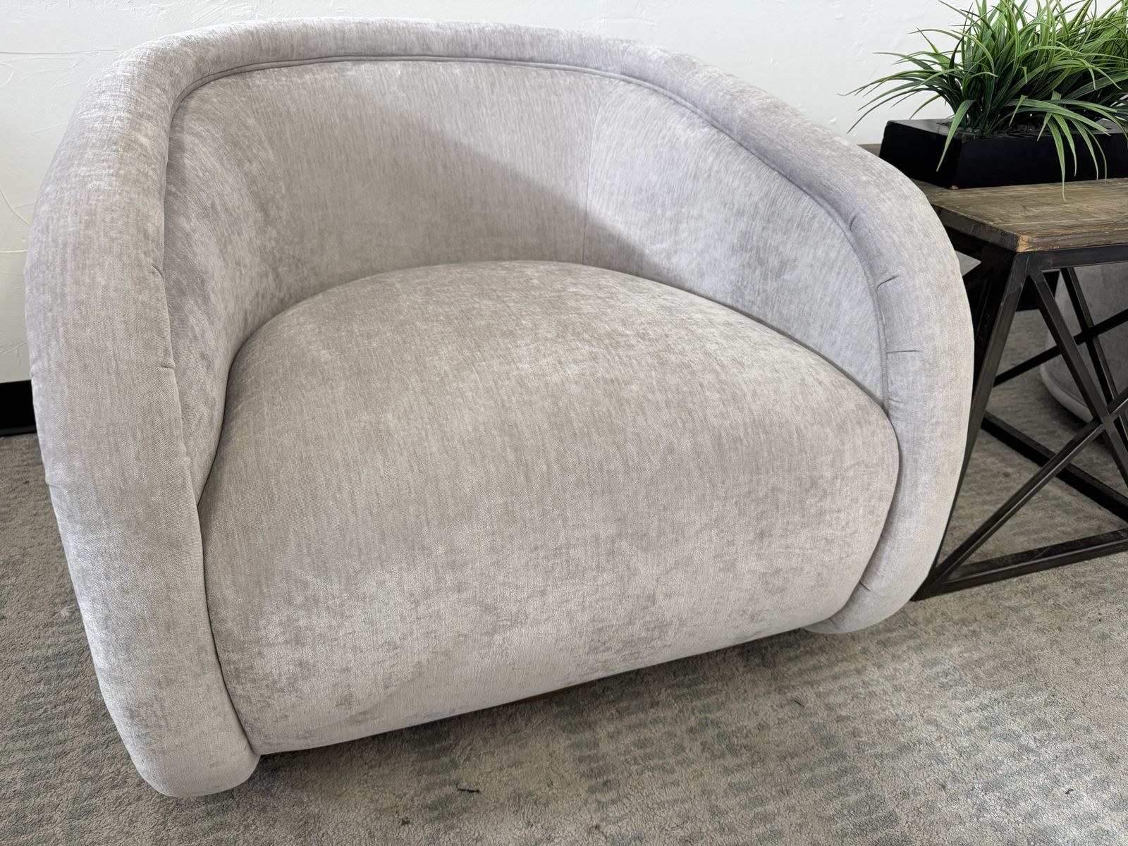Features: Material: 100% Polyester Fabric Full 360-Degree Swivel Base Waterfall Seat and Rounded Arms Solid Wood Swivel Base Pocket Coil Seat with Sinuous Spring Suspension