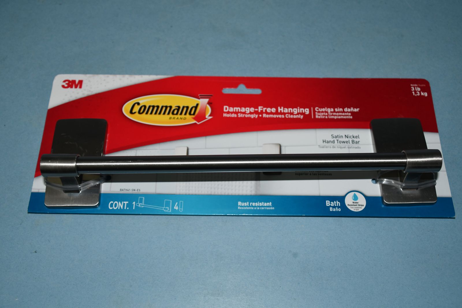 This Set of 2 COMMAND SATIN NICKEL PRODUCTS are from a smoke free home. They are a HAND TOWEL BAR & BASKET CADDY. It is $5 for both! Questions??? Please ask. We are located in Plain City. Cash only please.