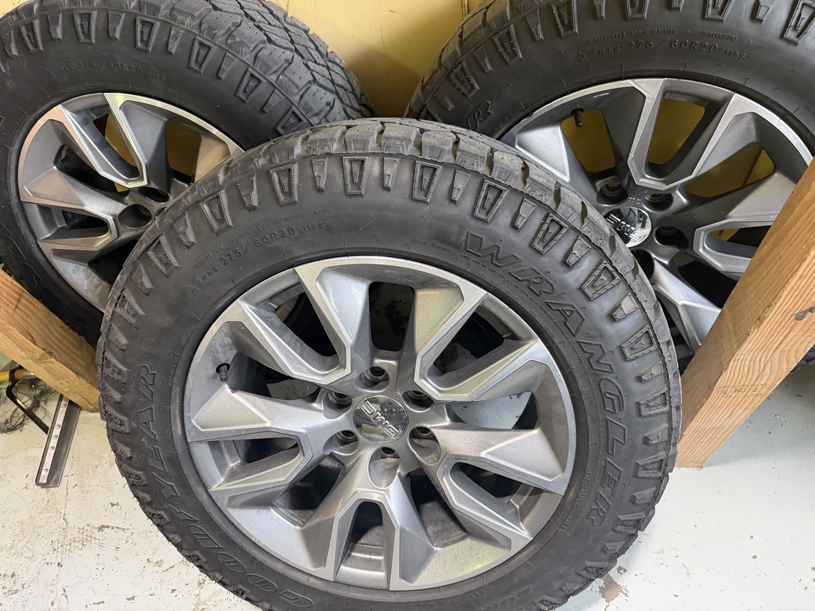 Venmo(4)Goodyear Wrangler tires with more than 3/4 tread left. Value $400 (4)Chevrolet TPS valve: $150 (4) 20” Chevy RST Silverado rims $500