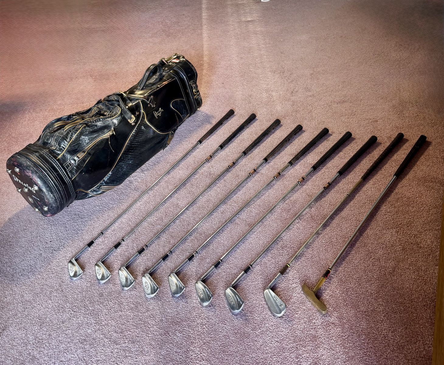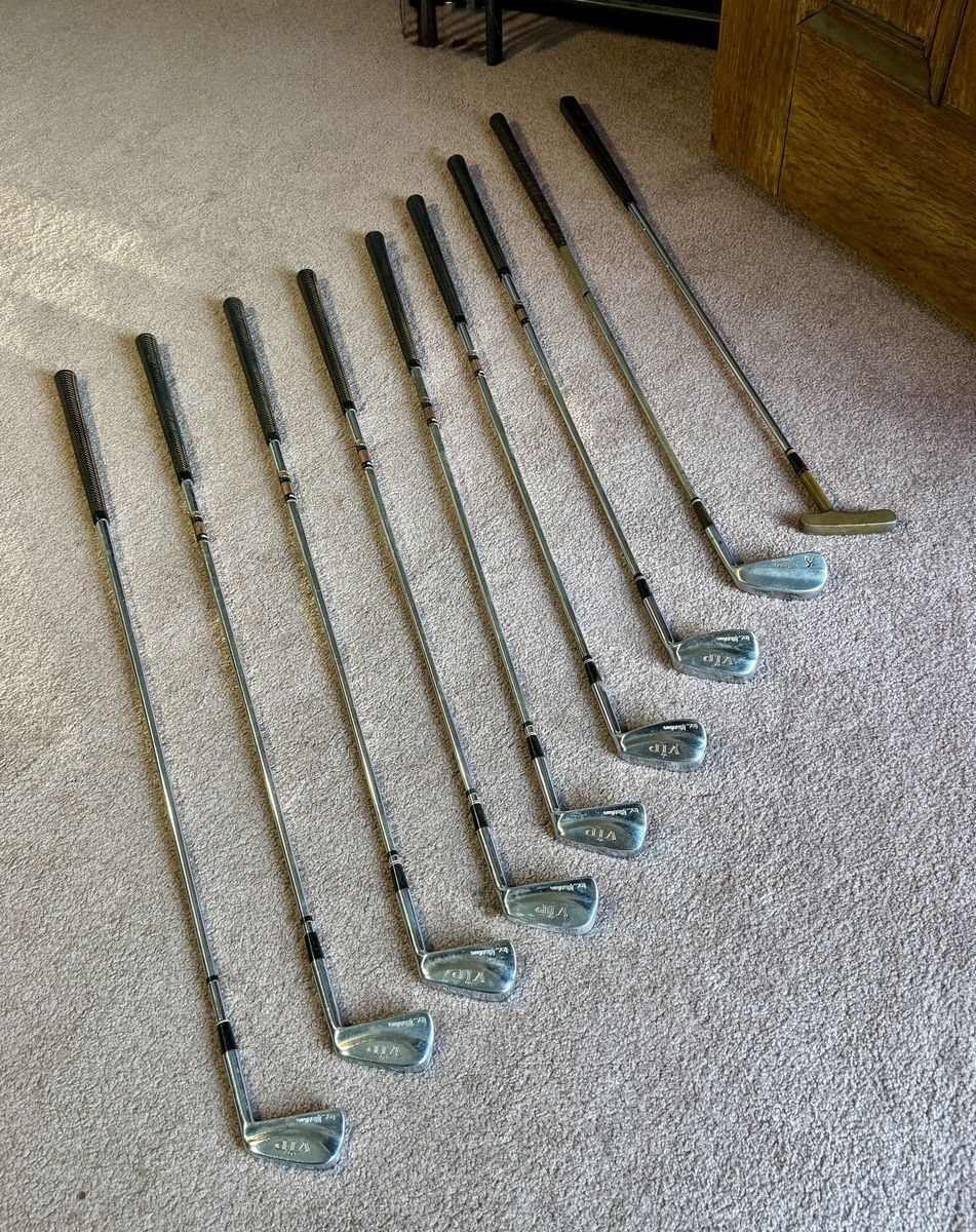 ApplePayClearing out the garage for a home sale. This is a premium vintage golf collection featuring professional-grade equipment from the golden era of forged blades. Perfect for a collector, a vintage play enthusiast, or high-end office display.