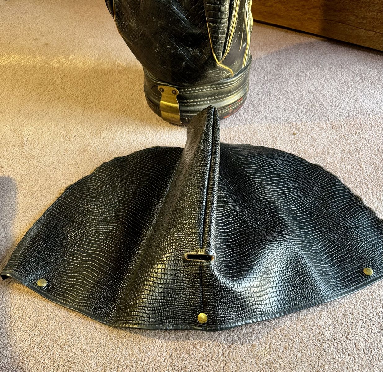 • A beautiful, high-end vintage staff bag made of soft, durable kangaroo leather. It has been well-cared for and is the perfect pairing for these clubs.