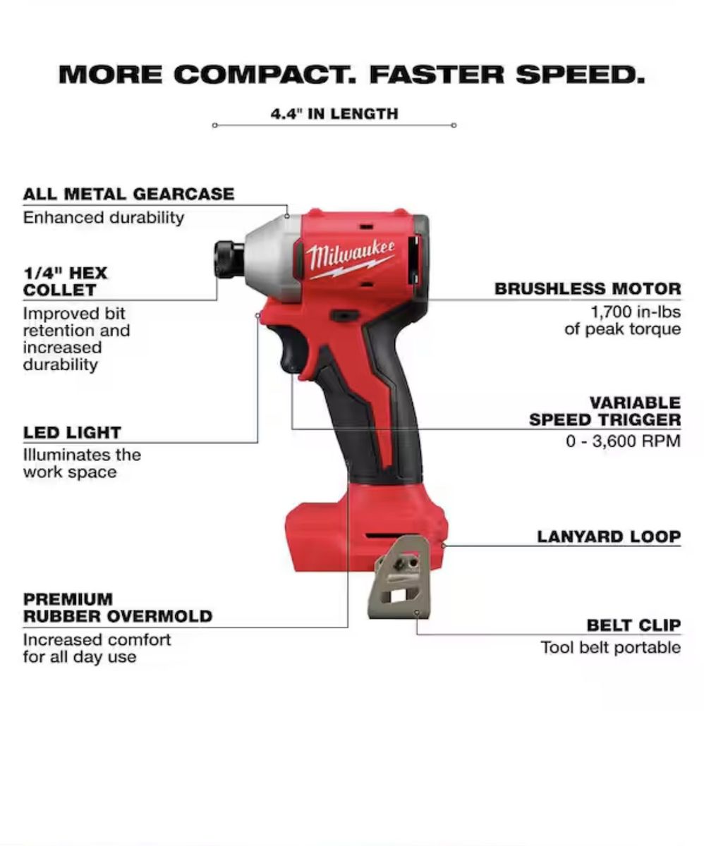 ZelleMilwaukee M18 18V Lithium-lon Brushless Cordless 1/4 in. Compact Impact Driver (Tool Only)