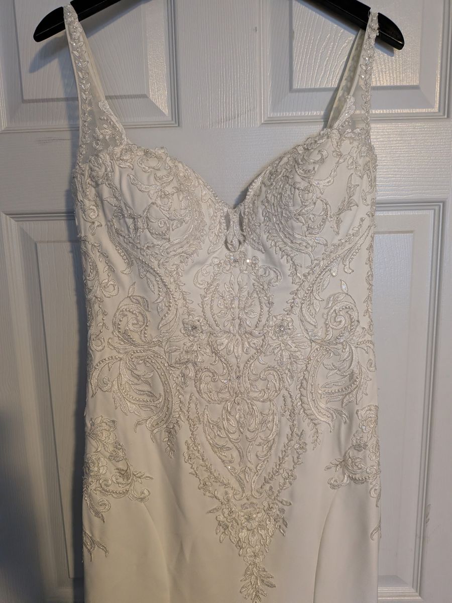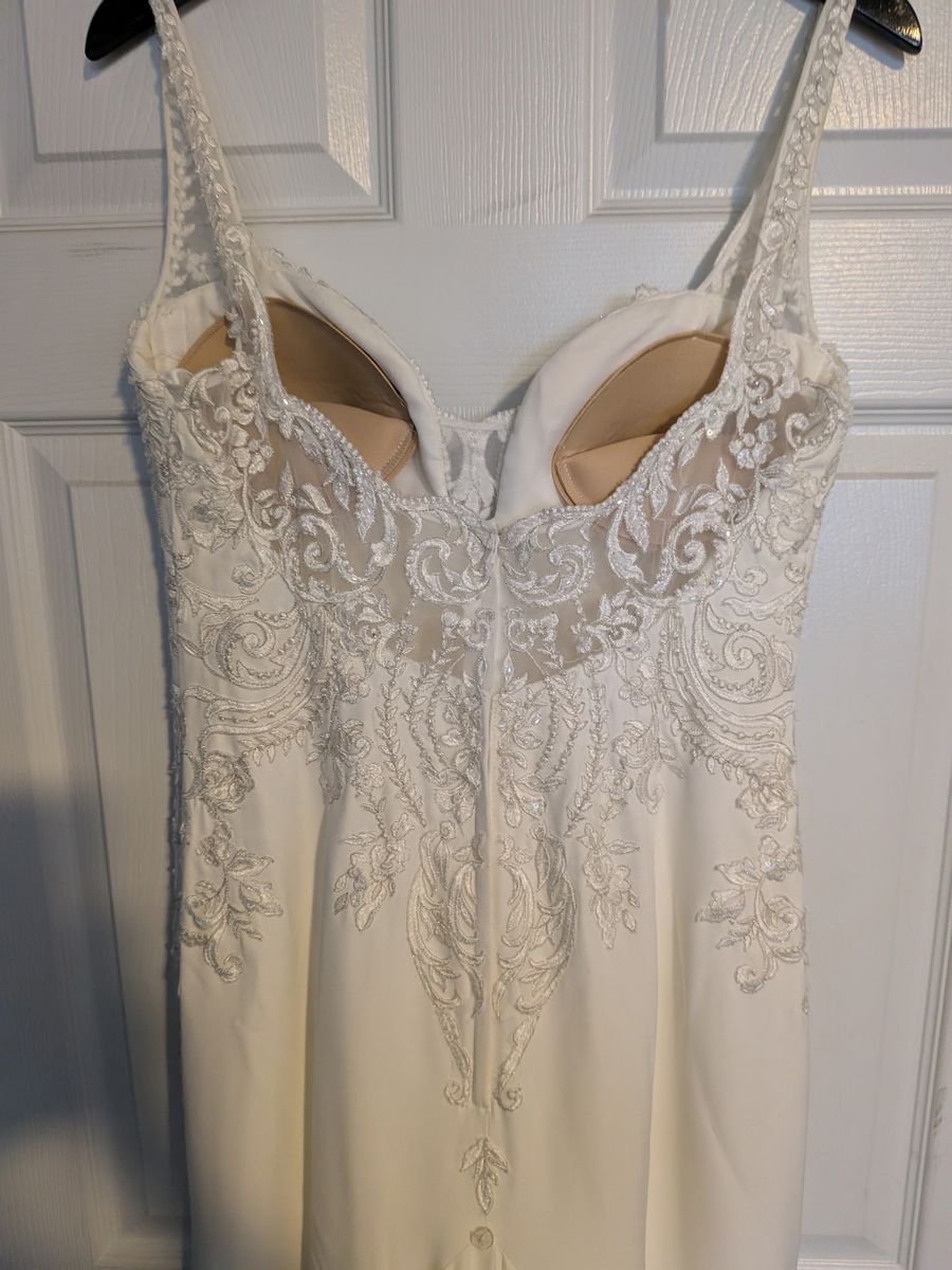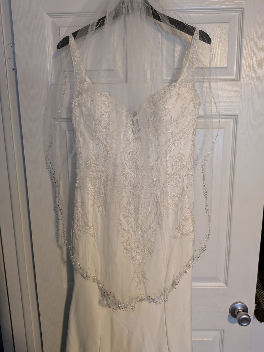 I have a beautiful mermaid dress worn once been professionally clean comes with veil and slip and also a storage bag sizes included in photos