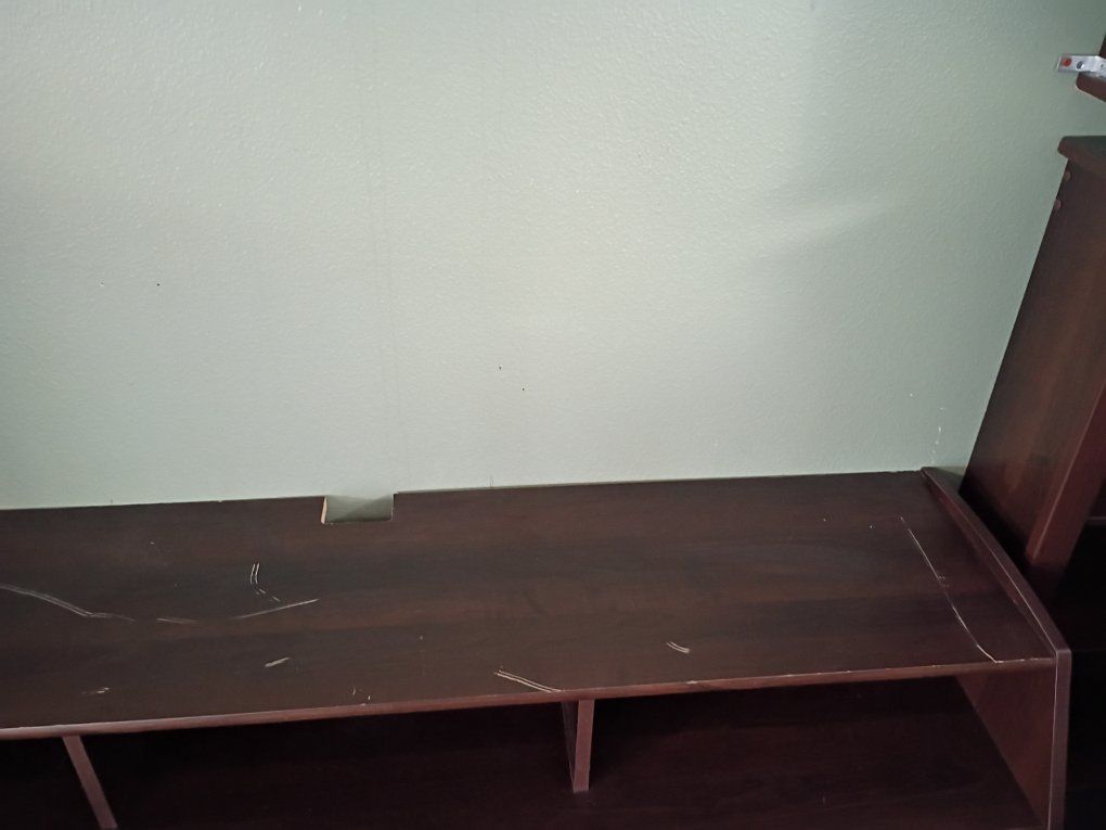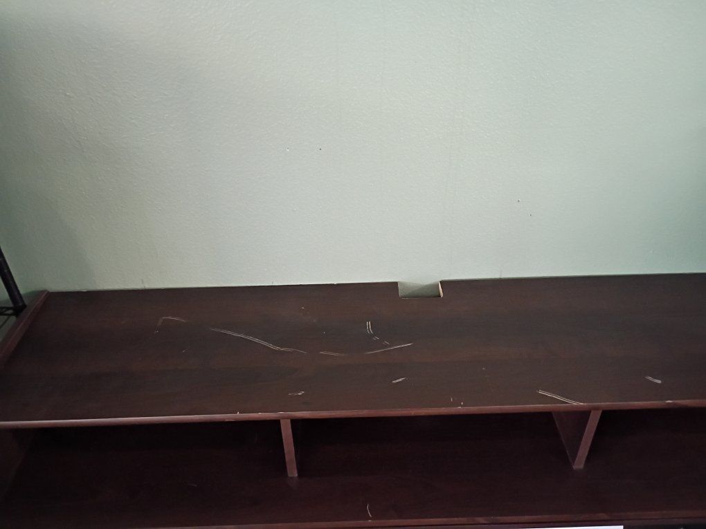 Sturdy dark wood TV stand with plenty of storage! Perfect for organizing your entertainment setup.