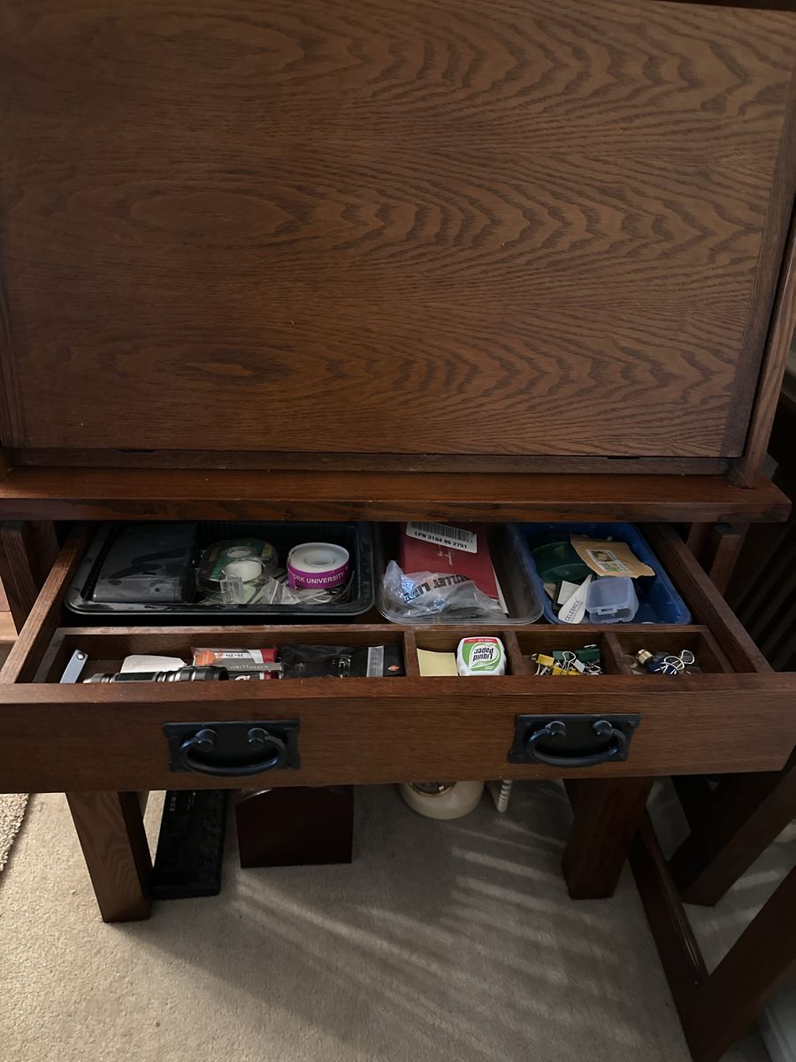 Very new minus the hinge (please refer pictures). Just need to reinforce. Lots of storage