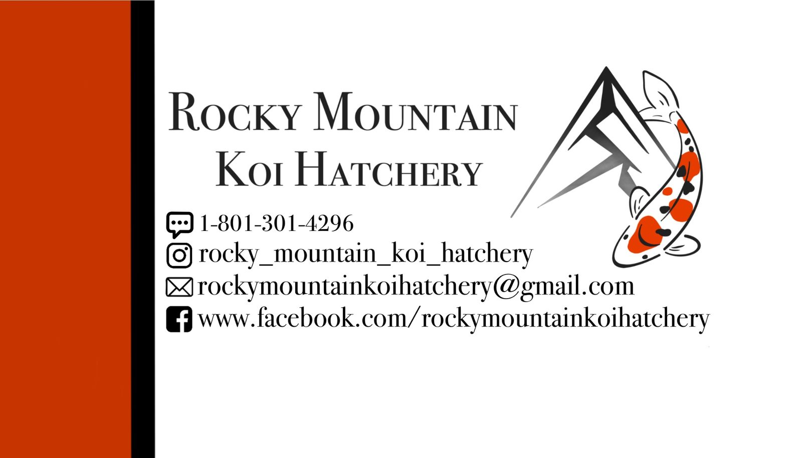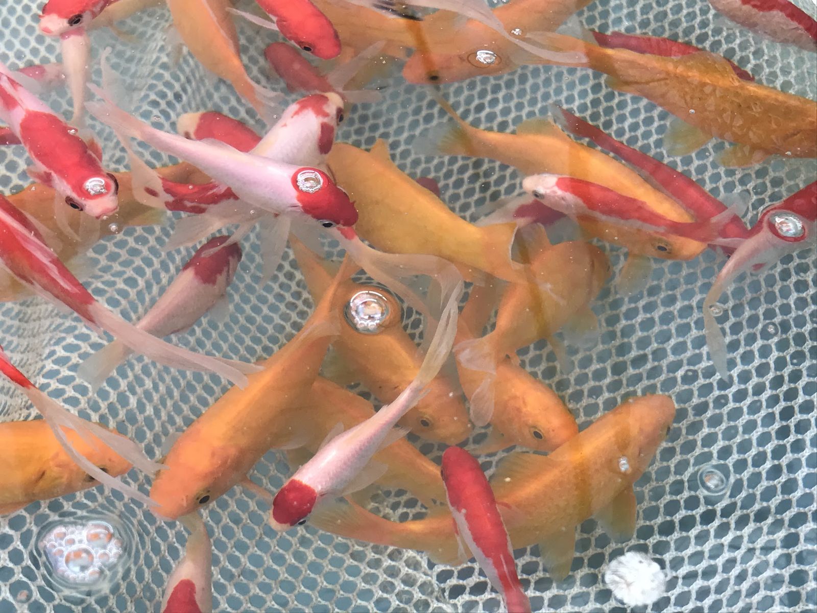 ZelleCome choose from hundreds of Koi fish directly from Rocky Mountain Koi Hatchery! We have a beautiful selection of Apricot (orange) and Sarasa (red and white) Comet Gold Fish! Standard fin and long fin. Prices range from $15-$100. 2 for $30