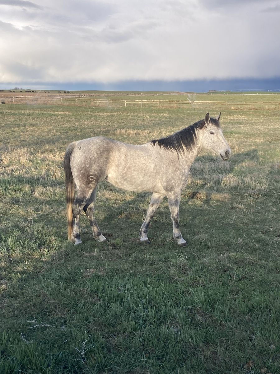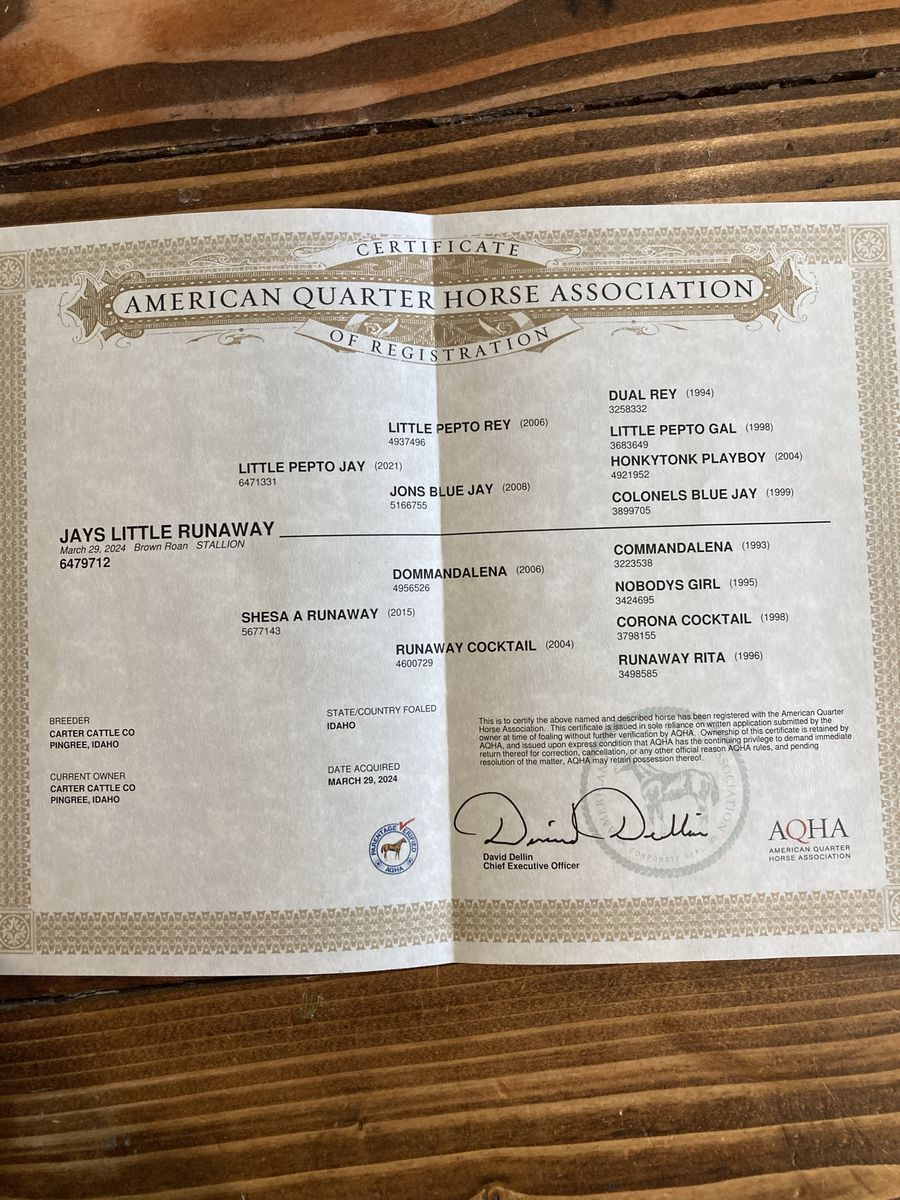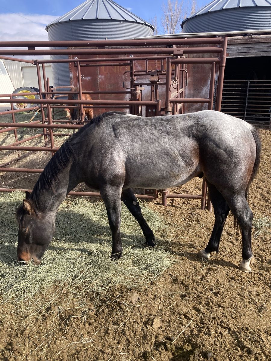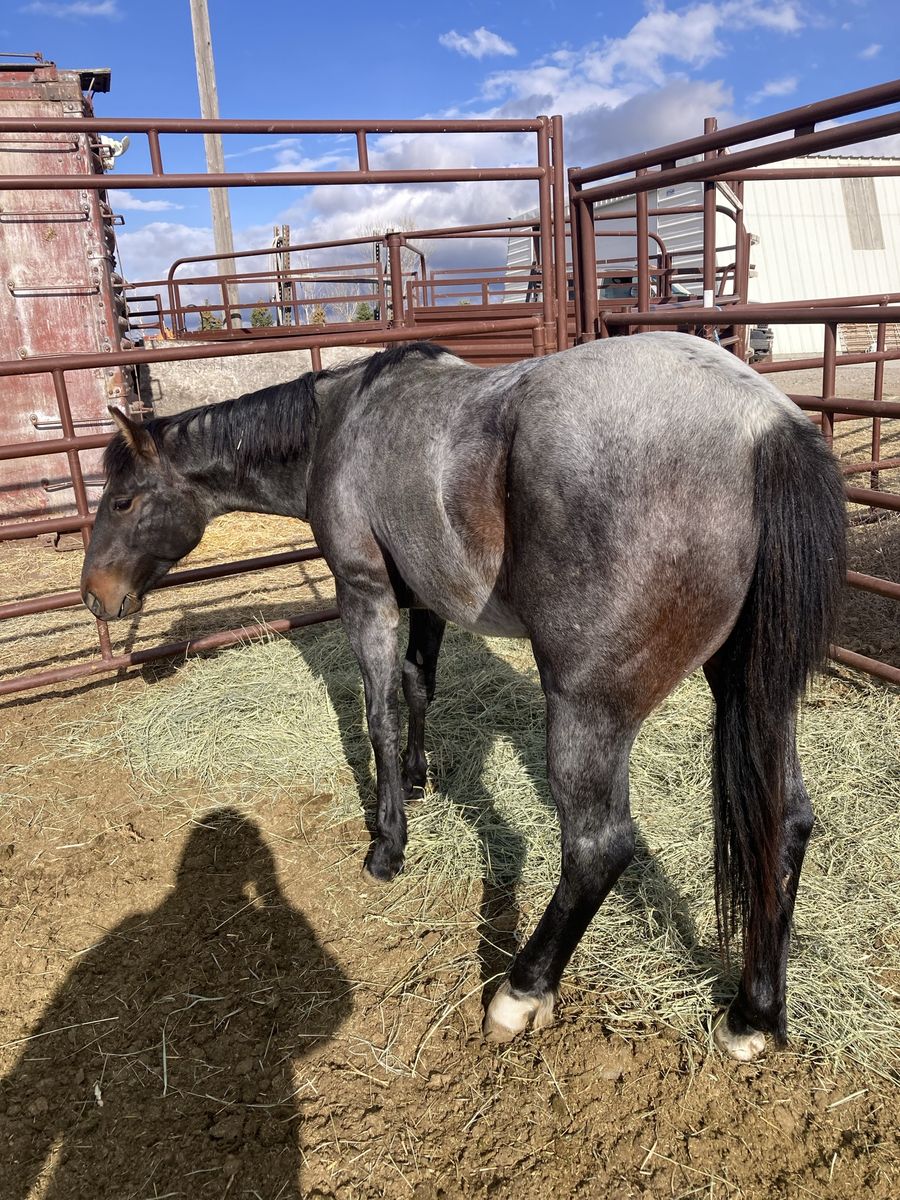 2024 AQHA Roan stud colt. He’s untouched, ready to go any direction. His dam (pictured) is my wife’s go to all around ranch horse, she has a big motor. His sire has a big motor as well. This colt seems to have the same personality and build as them, he’s very friendly. $4,500