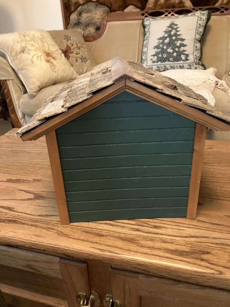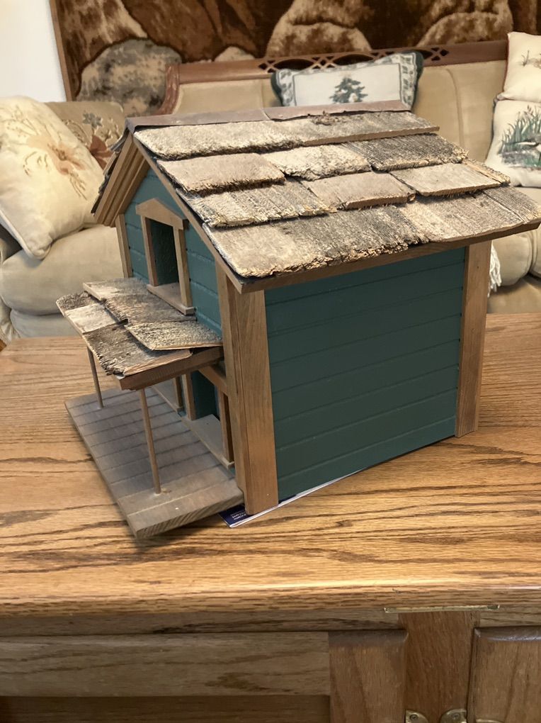 Bird house made of pine , stain glass for two windows and 100 year old shake shingles. High Quality hand made.