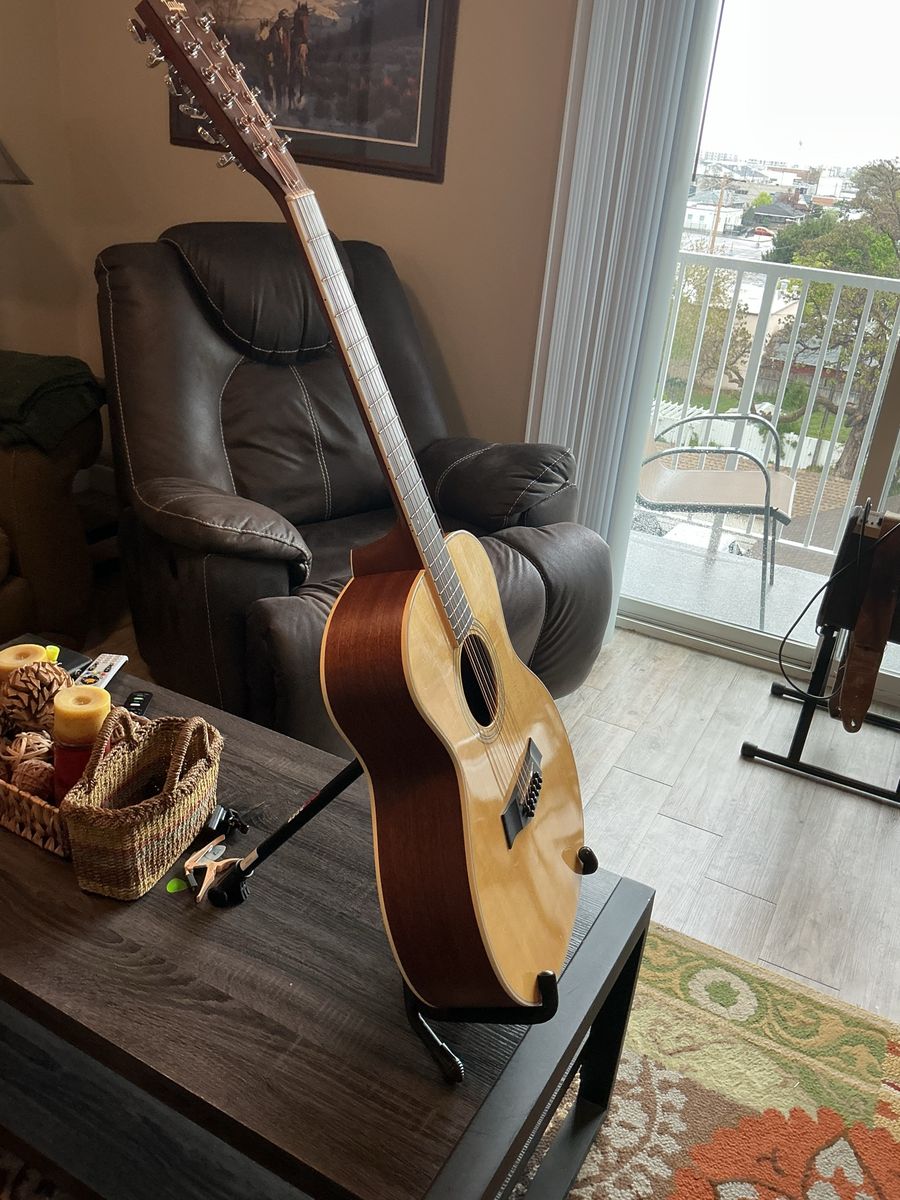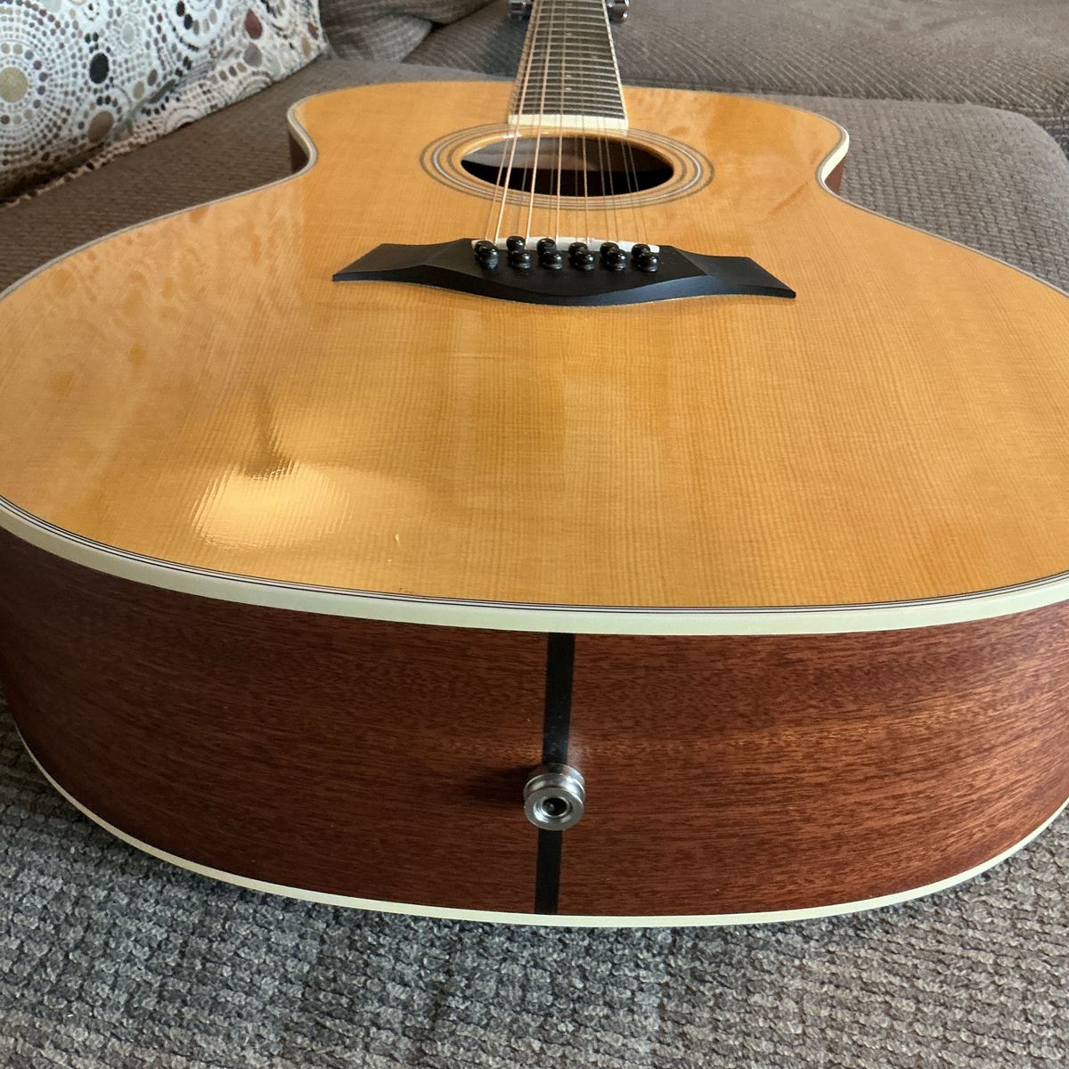 VenmoThis grand auditorium Taylor 12-string sounds and plays beautifully. If you have never been able to play a 12 string you will be amazed at how easy this guitar plays! A pick up system was professionally installed by Tom at Local Music making it acoustic/electric. One photo shows a volume and tone control mounted just inside the sound hole. Solid Sitka spruce top and solid sapele back and sides. Guitar is near perfect with only three very tiny nicks on the back(see photo). Comes with original Taylor hard shell case.