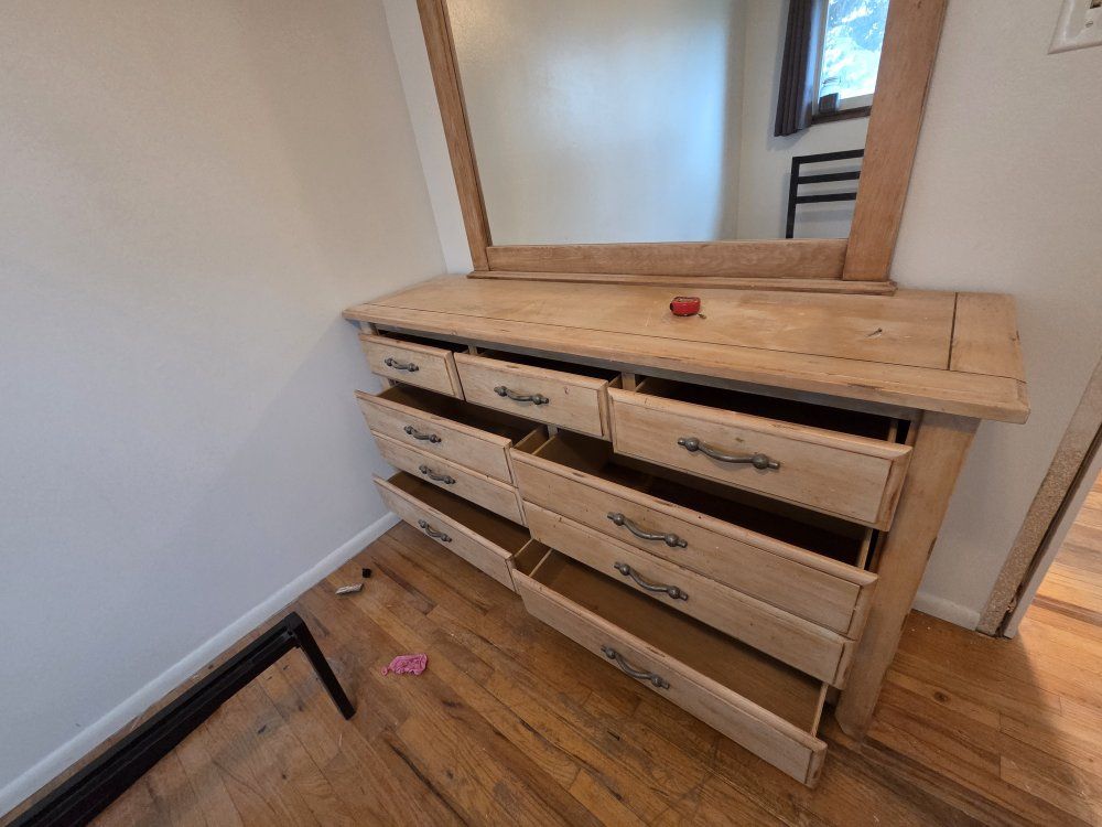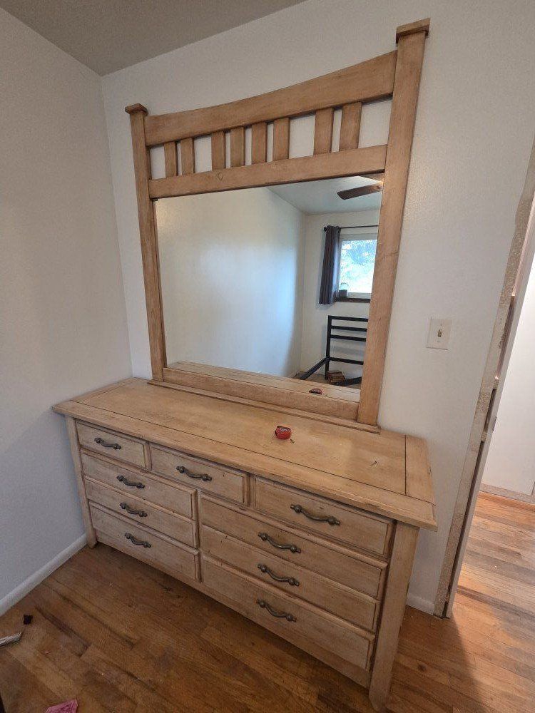 Wood dresser with mirror. Located in Huntsville. Doing remodel and dont need it anymore.