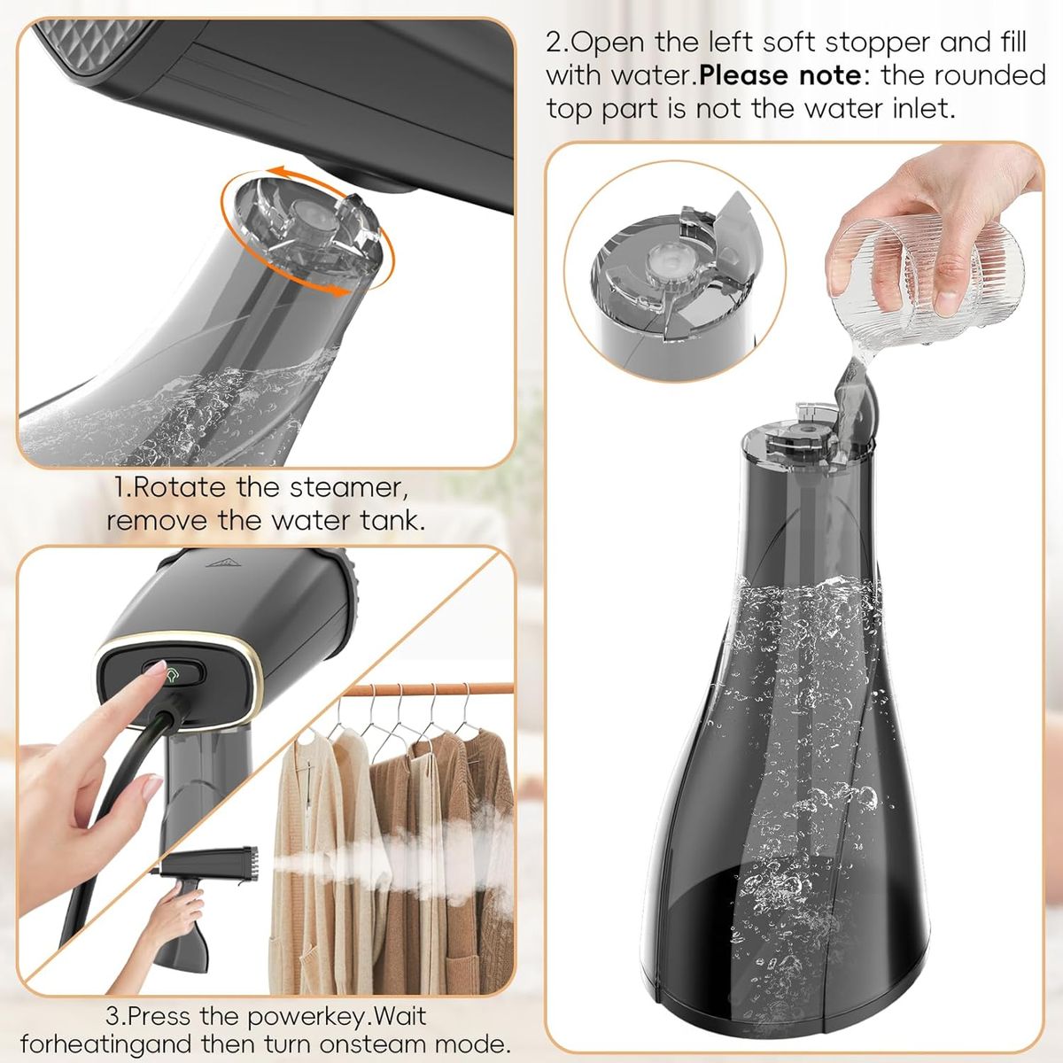 NEW IN BOX! Steamer for Clothes, Portable Garment Steamer for Fabric Wrinkle Remover with Brush, Steamer Iron with Water Tank for Home, Office and Travel, Black