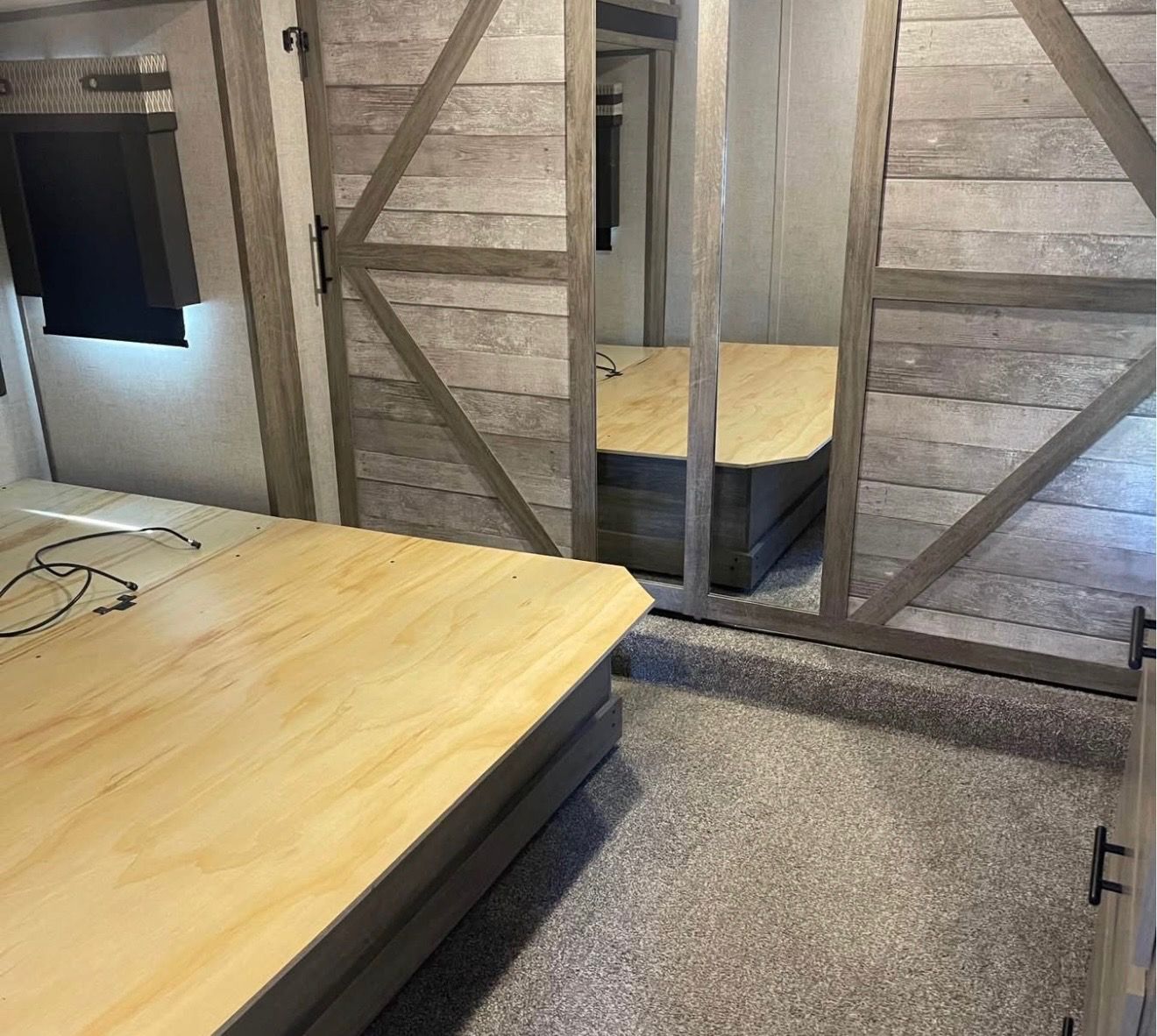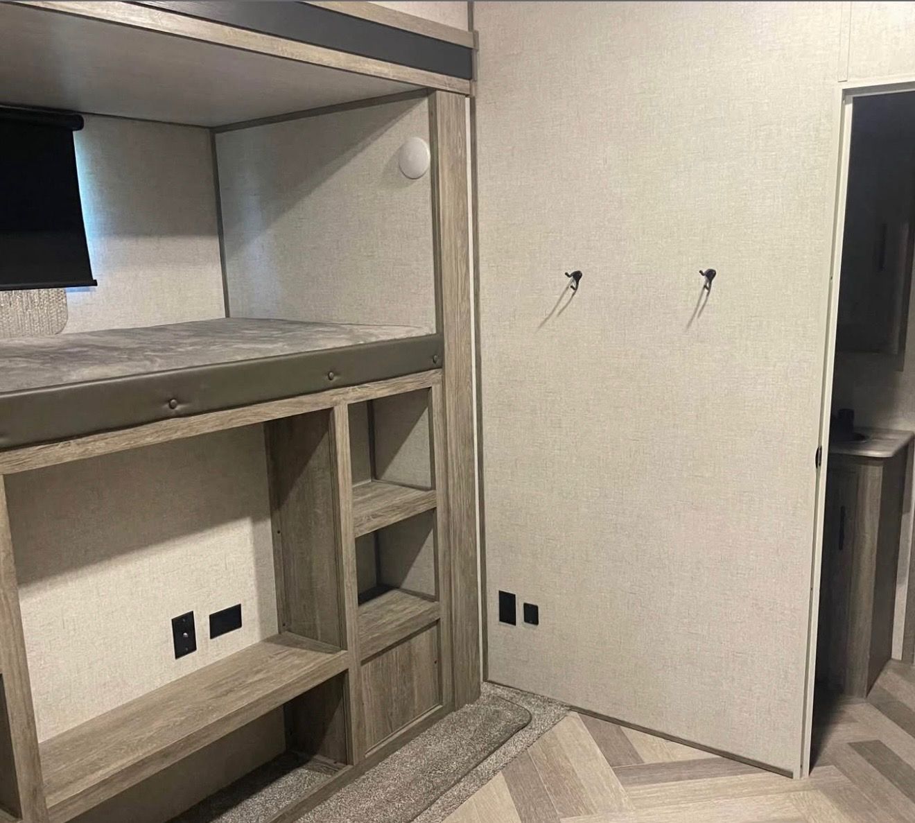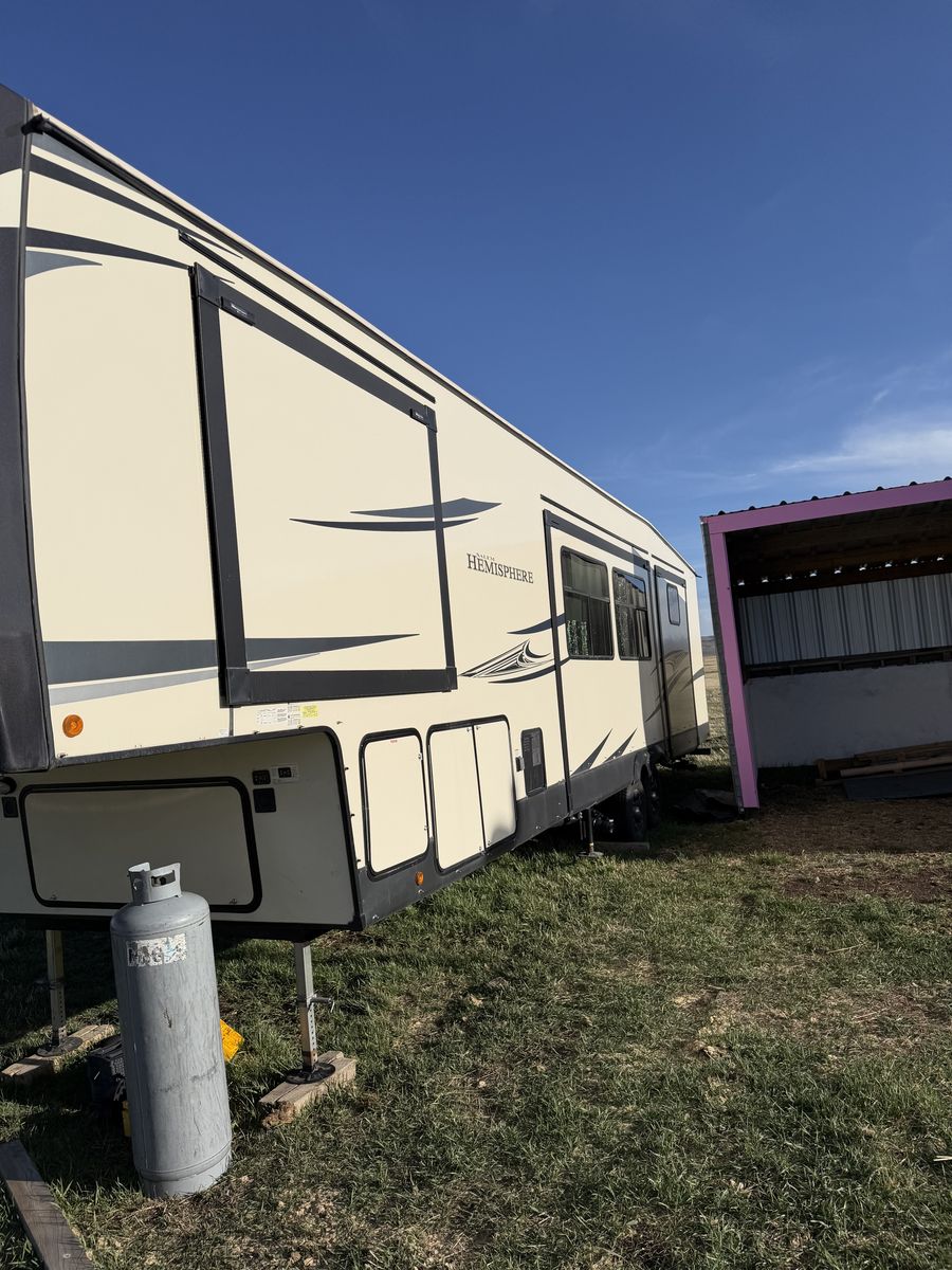 42 foot fifth wheel been lived in for the past two years been a sweet trailer just don't need it anymore furnace and ac serviced every year. Has a kids room in the back with its own bathroom and two beds and you can fit a twin under the bunk bed I took the couch that was in there out and had a crib. Two small tears on the flooring that I have glued back down and sealed so there's no leak. what I've found in its shape it MSRP's for 47000 asking 40,000 just wanting to get rid of it for what I owe.